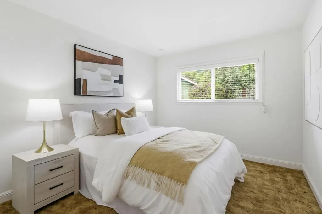Located at the back of a quiet West San Jose cul-de-sac, this approximately 1700 square foot 3 bedroom, 2 bath house features an expansive master suite with walk in closet, a light and bright living room with plantation shutters, granite countertops in the kitchen, extensive wooden floors, a large family room with a custom wet bar and ample space for entertaining. The sliding doors lead out to a beautifully landscaped backyard with a patio and extra room for a pool or play area. There is also a large, detached workshop at the back of the property with a half bathroom. This spacious structure could be used as a craft studio, exercise room, or other endless possibilities. Energy efficiencies include owned solar panels, overhead fans, central air conditioning, exterior remote controlled window shades and a large retractable patio awning for shade. The lot is approximately 8000 square feet, is in walking distance to Easterbrook Discovery School and located in the highly rated Moreland School District. Ideal for a young family, this is a must see.