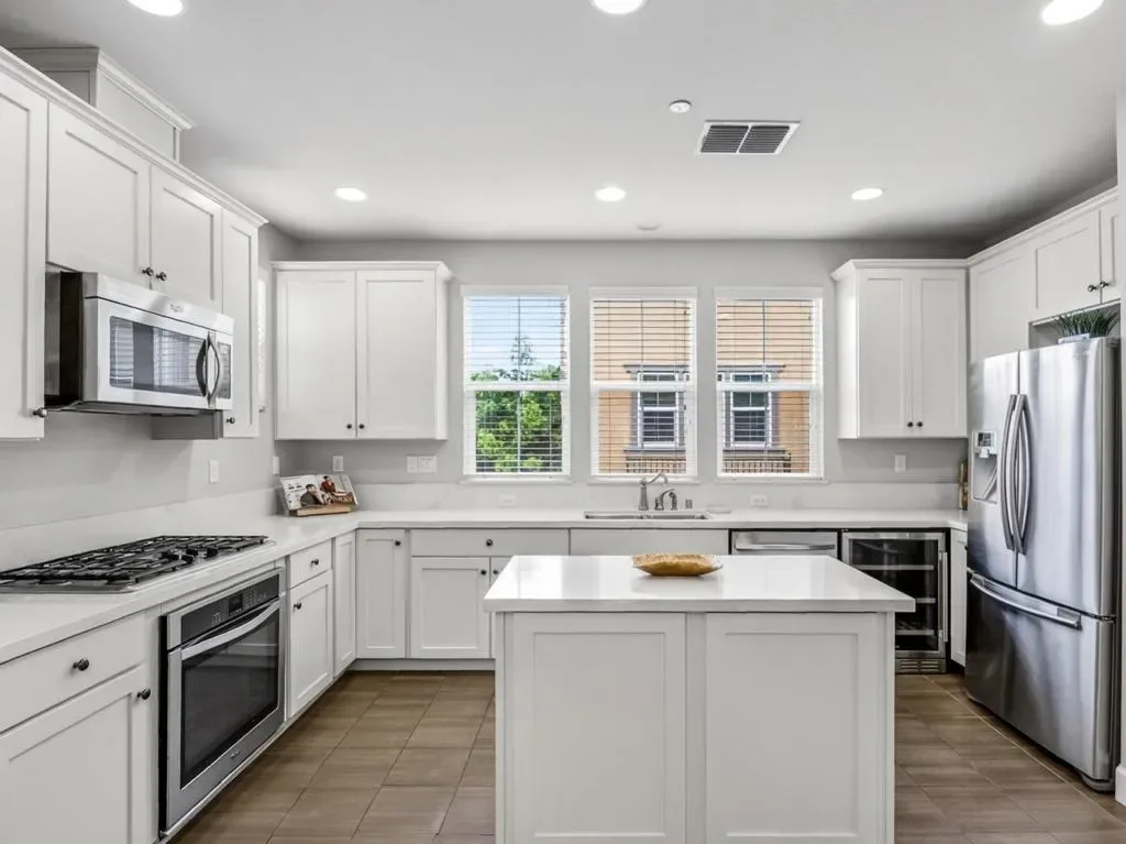 Stunning, light filled end unit condo offering townhome-style living, just steps from Santana Row. This beautifully maintained residence features 4 bedrooms and 4 full bathrooms with a highly desirable floor plan, including a first level bedroom and full bath, ideal for guests, extended family, or a private home office. Attached two-car side-by-side garage and interior laundry with washer and dryer included. The home showcases 7 wide-plank European Oak hardwood floors throughout most living areas, complemented by tile flooring in the kitchen and bathrooms. The chefs kitchen is thoughtfully designed with quartz countertops, stainless-steel appliances, gas cooktop, microwave, center island, and a pantry closet for additional storage. Additional highlights include high ceilings, raised-panel doors, dual-pane windows, and multi-zone central A/C. The spacious primary suite features dual vanity sinks, a separate soaking tub, stall shower, and a walk-in closet with mirrored doors. A junior ensuite bedroom with a private balcony with French doors off the second-level bedroom provides a lovely outdoor retreat. Located moments from Westfield Valley Fair Mall, offering world-class shopping, dining, and entertainment. Easy access to Highways 17, 880, and 280 makes commuting a breeze.