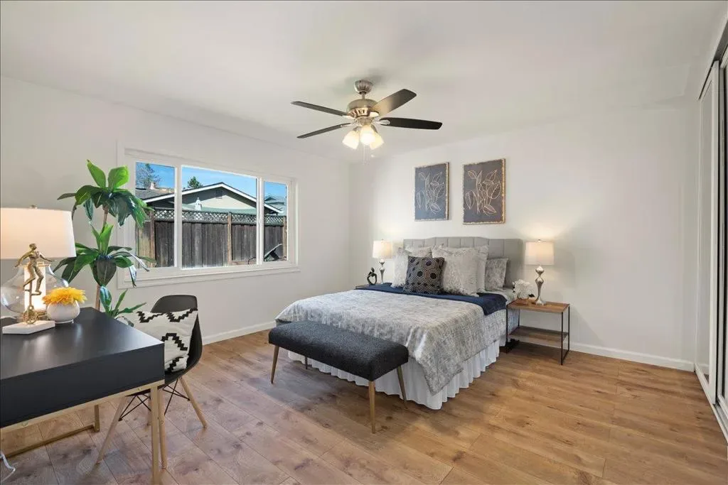 Tastefully updated Garcia home situated on a tree lined street in a fabulous Cambrian neighborhood. Remodeled kitchen with white shaker cabinets, slab granite counter tops, custom tiled backsplash, stainless steel appliances, gas oven/range, microwave, dishwasher and sink. Breakfast nook and built-in pantry. Living & dining room combination with a wood burning fireplace. Three bedrooms all with ceiling fans and mirrored closet doors. Newer interior doors and hardware. Wood blinds throughout. Custom updated tiled hall bathroom with new glass shower enclosure. Primary suite with porcelain tiled surfaces, stall shower with custom tiled banner. Laminate wood flooring throughout. Double pane windows and slider. Freshly painted interior. Central forced air heating and air-conditioning. Newer roof & gutters in 2020. Newer garage door and opener in 2020. Freshly updated landscaping. New Tough Shed for extra storage. New custom wood swinging gate to park extra vehicles, boats or trailer on side yard. Some newer fencing. Three car driveway and two car garage. Large and spacious backyard. Centrally located strolling distance to Carlton Elementary, Union Middle, and Blue Ribbon Award winning Leigh High School. Close to Safeway, Starbucks and The Cantina. Easy commuting to all major freeways
