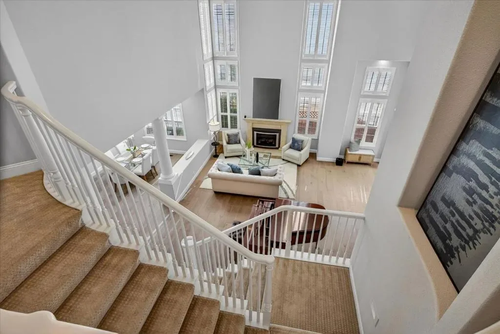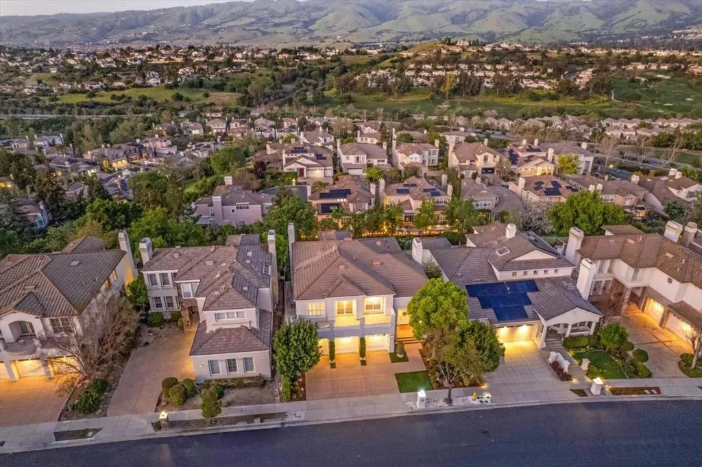 Nestled in the prestigious Silver Creek Valley Country Club, this 4-bedroom, 3.5-bath home offers 3,599 sq. ft. of timeless elegance and modern comfort. Step inside to soaring 20-foot ceilings, sunlit windows, and a dramatic grand staircase. The recently updated chefs kitchen features quartz and granite counters, a spacious island with a vegetable sink, top-tier appliances, and ample cabinetry. The cozy family room with a fireplace and breakfast nook flows seamlessly to a patio with sweeping views perfect for entertaining or relaxing. The first-floor private suite is ideal for guests or multigenerational living. Upstairs, the primary suite showcases breathtaking Mt. Hamilton views, a spa-like bath with a soaking tub, glass-enclosed shower, dual vanities, and a walk-in closet. Two additional bedrooms and a bonus room with balcony access complete the upper level. The low-maintenance backyard provides a tranquil retreat with stunning vistas. Conveniently located near the communities front gate and amenities, This home is also within the highly-rated Evergreen School District, celebrated for its exceptional academics and thriving community. Discover luxury living in the heart of Silicon Valley!