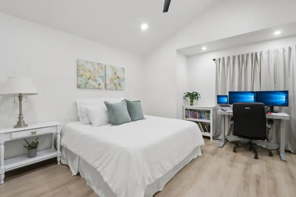 Welcome to this charming 3-bedroom, 2.5-bath PUD Townhouse located in the vibrant city of San Jose. This resident features natural lighting throughout. The upstairs bathrooms feature integrated Bluetooth speakers in the exhaust fans, so you can enjoy your favorite tunes while relaxing. The front door features smart locking technology for added security and convenience. The kitchen is equipped with modern appliances, including a dishwasher, microwave, electric cooktop, oven range, and refrigerator, all complemented by elegant granite countertops. The home features laminate wood-style flooring throughout and tile flooring in the restrooms. Enjoy cozy evenings by the fireplace in the living room, which seamlessly connects to the dining area. Additional amenities include vaulted ceilings and energy-efficient features such as double-pane windows and Energy Star appliances. For added convenience, the laundry is located on the upper floor, ensuring easy access. Situated within the Oak Grove Elementary School District, this property provides access to quality education. Families will appreciate the great school proximity. With central AC, heating, and electric vehicle hookup,this home is equipped for modern living standards. Enjoy easy access to local shopping, parks,and recreational.