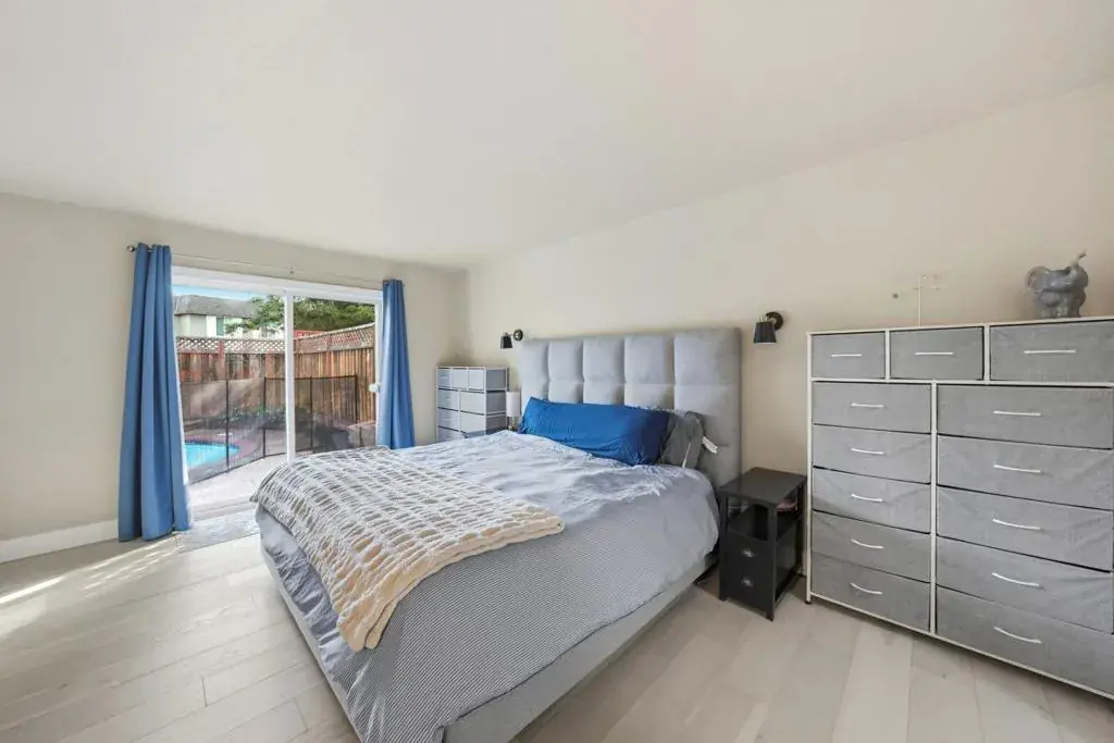 Welcome to this bright and open 3-bed, 2-bath home plus a versatile bonus area in the highly desirable Banana Grove community of Blossom Valley. This well-maintained residence features a remodeled kitchen with abundant cabinet space, an updated hall bathroom, fresh interior paint, and attractive low-maintenance landscaping. Engineered hardwood and tile floors flow throughout the open kitchen and dining area, while the living room showcases vaulted ceilings and a cozy wood-burning fireplace. Three spacious bedrooms and the flexible bonus area off the kitchen is perfectly suited as a home office, guest space, or potential fourth bedroom. The spacious primary suite offers mirrored closets, a private bath, and sliding door access to a serene backyard retreat with an in-ground swimming pool and waterfall. Tucked away on a quiet court near shopping, schools, and major commute routes, this private oasis is a must-see.