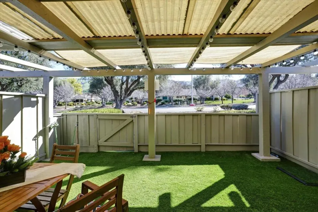 One level condo with no one above or below and easy access from the street: Cribari Circle . This 2 bedroom 2 bath gorgeous condo has been recently emodeled and everything inside says easy living. Both bathrooms and kitchen have been fully redone.You will also find an interior washer & dryer ( only a few units have these). It also has laminate floors through out. Location provides easy access to clubhouse, pickleball courts and Cribari Center. It also has a back sunny patio with artificial grass and storage. If that was not enough it has a huge storage area in the attic. Please make sure you tour the HOA facilities and clubhouse.