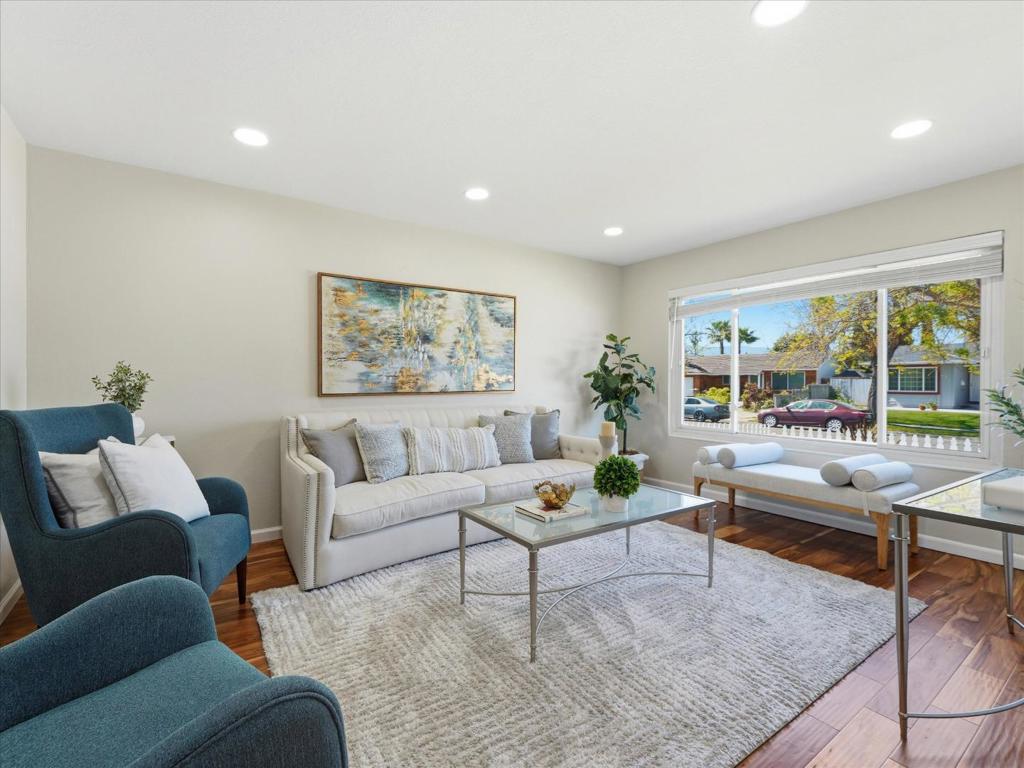 Huge PRICE IMPROVEMENT! Welcome to this beautifully upgraded ranch home featuring owned solar and a Tesla backup battery, ideally located in the desirable Blossom Valley neighborhood with top-rated schools. *Nestled on a quiet street, this light-filled residence offers a functional 4-bedroom, 2-bath floor plan with a spacious living room and a separate family room featuring a large slider that opens to the backyardperfect for seamless indoor-outdoor living and entertaining. *The contemporary kitchen is thoughtfully updated with quartz countertops, white cabinetry with soft-close drawers, a stylish backsplash, and stainless-steel appliances. *Additional upgrades include Acacia-style hardwood floors, fresh exterior paint, updated bathrooms, dual-pane windows, recessed lighting ,newer blinds, central heating & A/C, water softener, EV charger port and energy-efficient solar with battery backup. *Enjoy an expansive, private backyard with a covered patioideal for dining, gardening, and outdoor gatherings. *The attached 2-car garage features a new WiFi-enabled door and motor, plus an extended driveway for added parking. *Conveniently located to all 3 Schools, Light rail, Kaiser Hospital, shopping, Westfield mall. Easy access to Highways 87, 85, and 101, downtown San Jose.