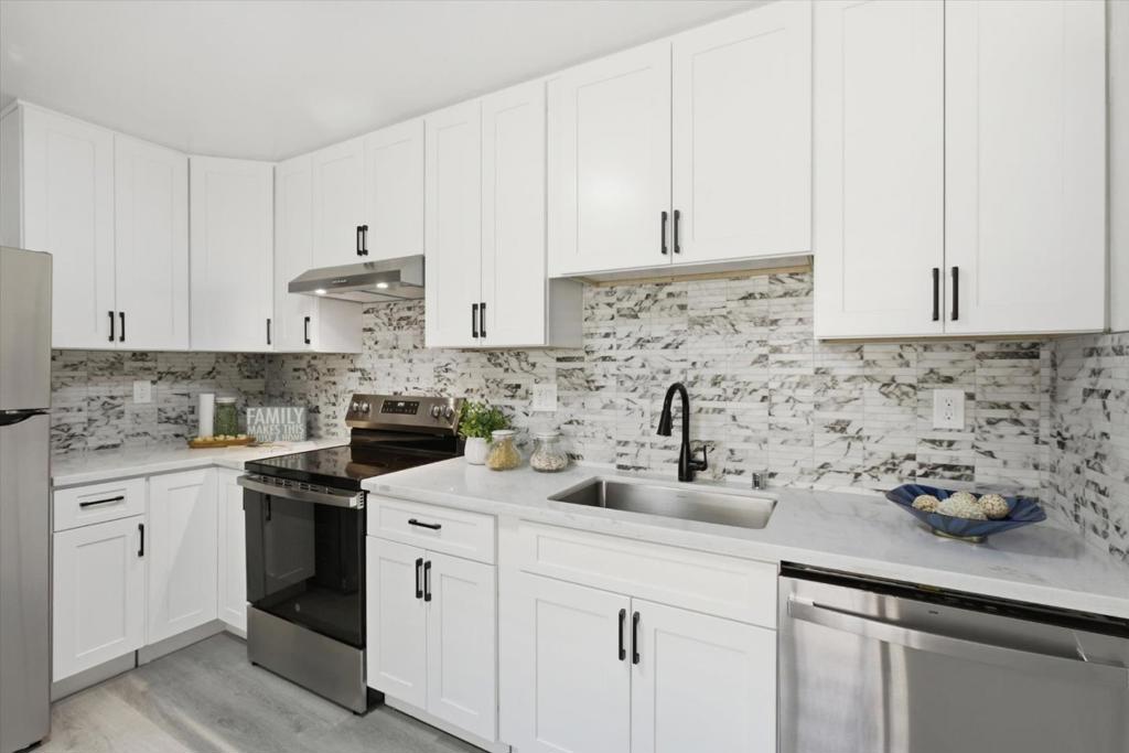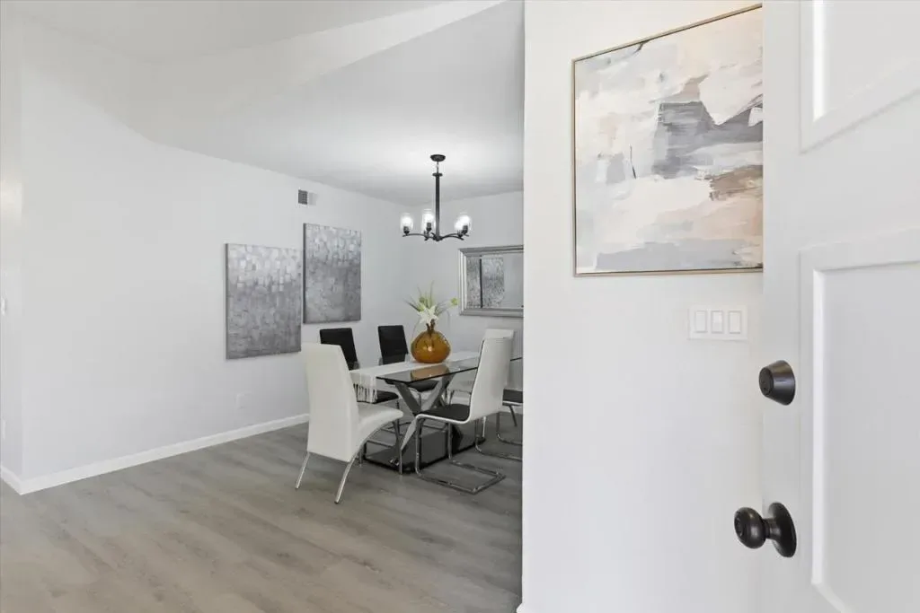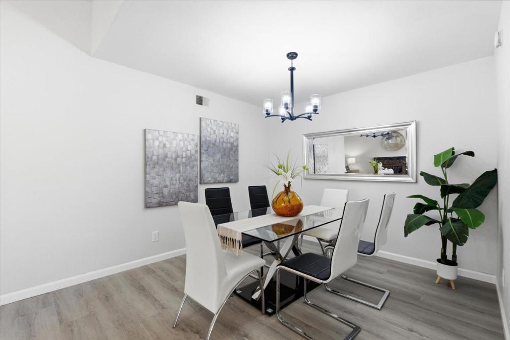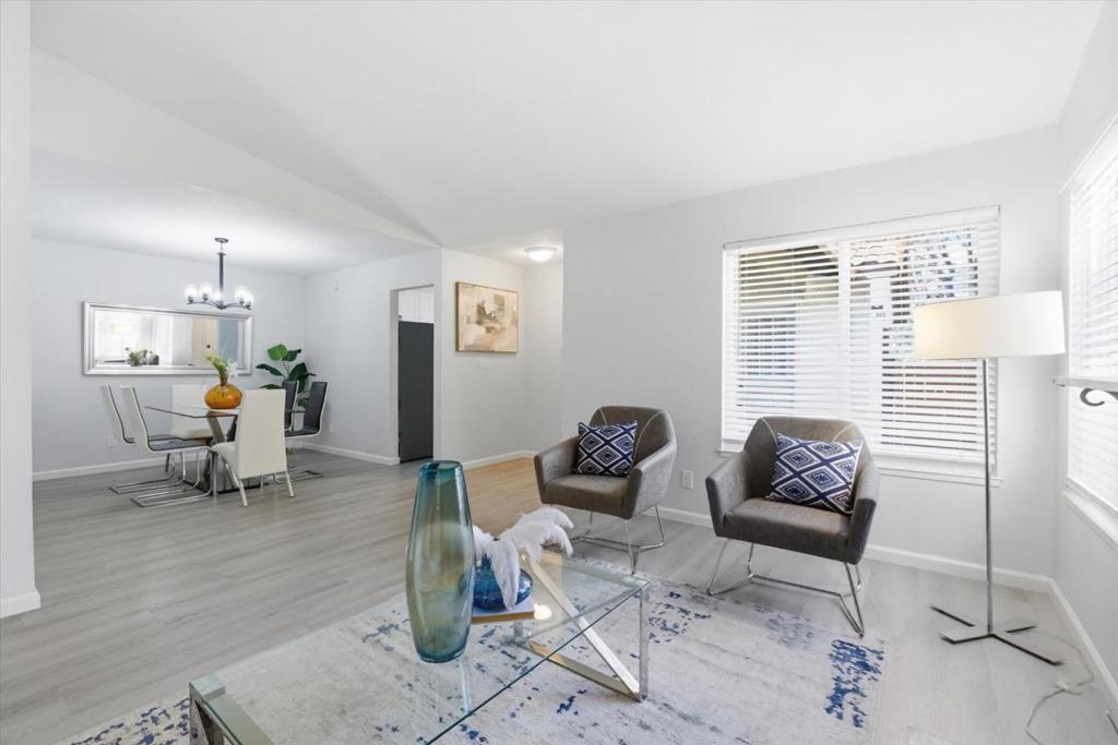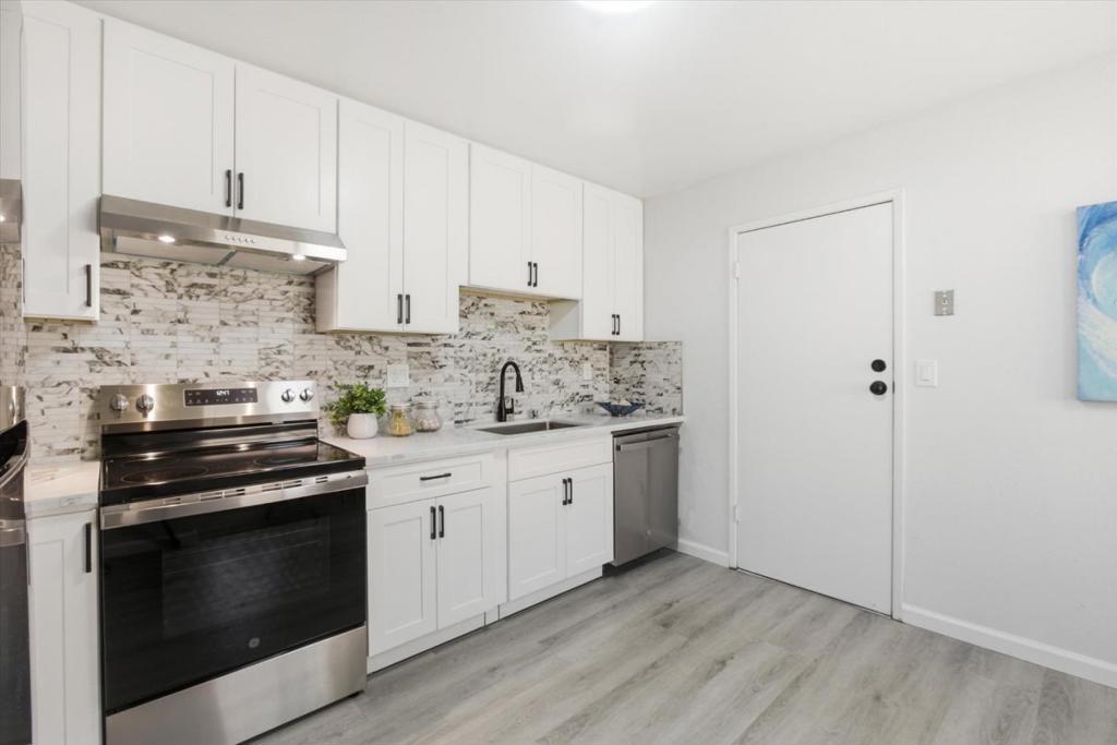 This move-in ready 3 bedrooms, 2 full bathrooms home was beautifully updated and modernized. It features a functional layout with open living room and dining room areas that are perfect for family gathering or entertaining. The NEW Kitchen boasts of a modern design with white cabinets & granite countertop that are elegantly paired with understated black and white tiled backsplash, black cabinet fixtures and faucet, and NEW stainless steel appliances! This generous kitchen space accommodates an eat-in area. Two full bathrooms are upgraded with granite wall slabs, NEW vanities with granite vanity tops, and NEW light fixtures. The primary bedroom opens into a private backyard with a patio that is perfect for relaxing or entertaining. This home is updated with NEW double-pane windows & sliding door, NEW waterproof vinyl floors throughout this home, and freshly painted interiors! It also has a NEW furnace and a NEW water heater!