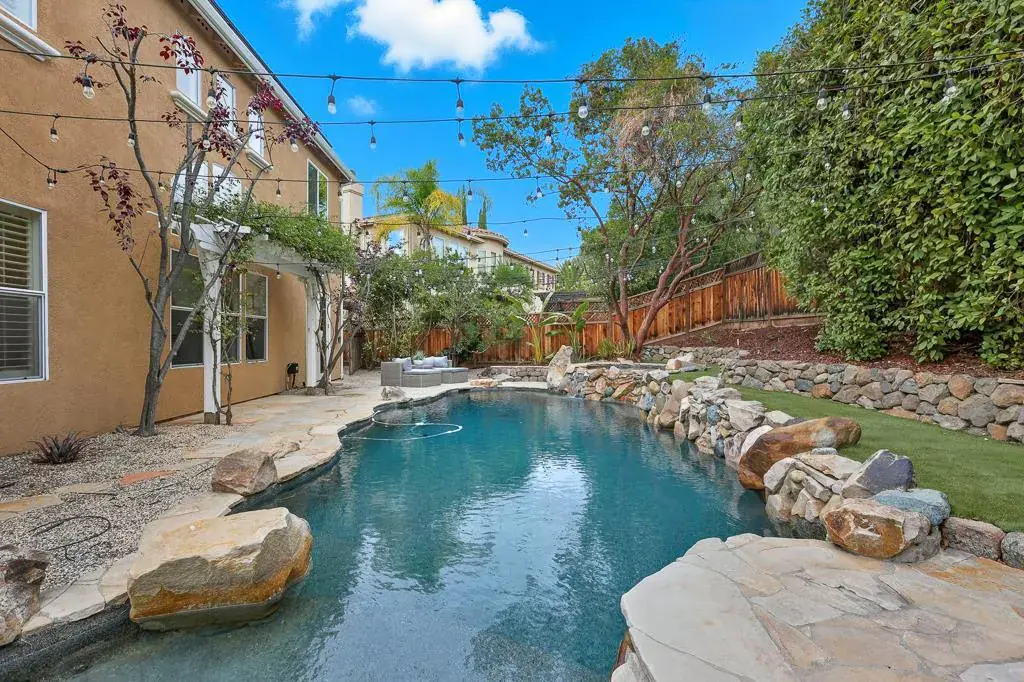 Perched atop one of Silver Creek Valley Country Clubs most coveted streets, this spectacular estate blends luxury, comfort, and functionality. With approximately 3,809 sq. ft. on an almost 12,000 sq. ft. lot, this 5-bedroom (4 plus office), 4.5-bath home offers an idyllic lifestyle complete with a sparkling pool and resort-style ambiance.The desirable floor plan suits families and multigenerational living, featuring two bedrooms on the main levelincluding a dedicated officeand a side play yard with a swing set. From the formal entry with soaring ceilings and hardwood floors, step into elegant, light-filled living spaces.The chefs kitchen showcases freshly painted cabinetry, stainless steel appliances, an expansive island, and a walk-in pantry. The family room offers a cozy gas fireplace and windows framing picturesque pool views. Upstairs, the primary suite is a serene retreat with a spa-inspired bath and custom walk-in closet, while two additional ensuite bedrooms offer comfort and privacy.Additional highlights include plantation shutters, solar panels, double-pane windows, an EV charger, and an entertainers backyard perfect for relaxing or hosting gatherings.Residents enjoy world-class golf, tennis, swimming, and dining amenities.