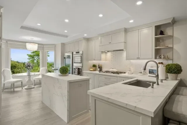 Experience the finest home in the prestigious gated Villas of Almaden – an extensively remodeled 2,334 sq ft townhome with over $500,000 in luxury upgrades. Set against the stunning backdrop of downtown San Jose and the East Foothills, this residence offers unmatched views, serenity, style, and sophistication. The 2019 permitted remodel touches every inch: soaring ceilings, designer lighting, elegant flooring, and expansive view decks. The chef’s kitchen boasts high-end appliances, an island, marble-style quartz countertops, glass cabinetry, and a bar area with a wine fridge. A cozy gas fireplace and custom lighting elevate the living and dining room. The spa-like primary suite features a fireplace, motorized blackout shades, built-in closet cabinetry, and a luxe bath with marble shower and soaking tub. Two spacious secondary bedrooms share an updated bath, while a custom laundry room includes a sink, cabinetry, and premium washer/dryer. Energy efficiency and healthy living shine with solar, healthy insulation, A/C, a whole-house fan, and a water purification system. With a finished garage, multiple additional storage areas, and potential for under-home expansion, this is truly the crown jewel of the community. An elevated lifestyle awaits in this unrivaled Almaden retreat!