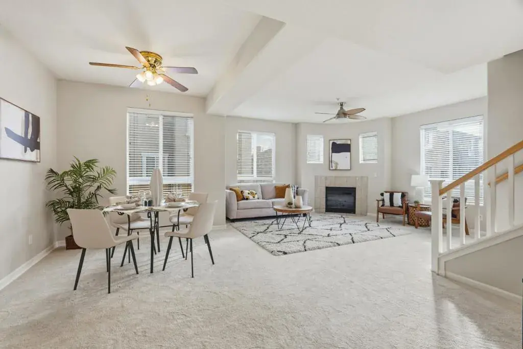 Nestled in the welcoming Communications Hill neighborhood, this charming end-unit home at 599 Marble Arch Ave invites you in with warmth and ease. New carpeting downstairs and sleek laminate floors in the dining area add a cozy touch, with wood floors on the stairs and upstairs. Three generous walk-in closets provide plenty of space. The light-filled living room with soaring vaulted ceilings and a fireplace feels open and relaxing, perfect for unwinding. Retreat to the primary suite with its high ceilings, fireplace, deep soaking tub, and abundant storage. Amenities like copper plumbing, kitchen gas, double-pane windows, and AC ensure comfort year-round. A two-car garage with extra storage keeps things organized. Stroll community trails, dip in the pool, or relax in the spaall steps from shops, dining, and easy commutes. Ready for you to make it home.