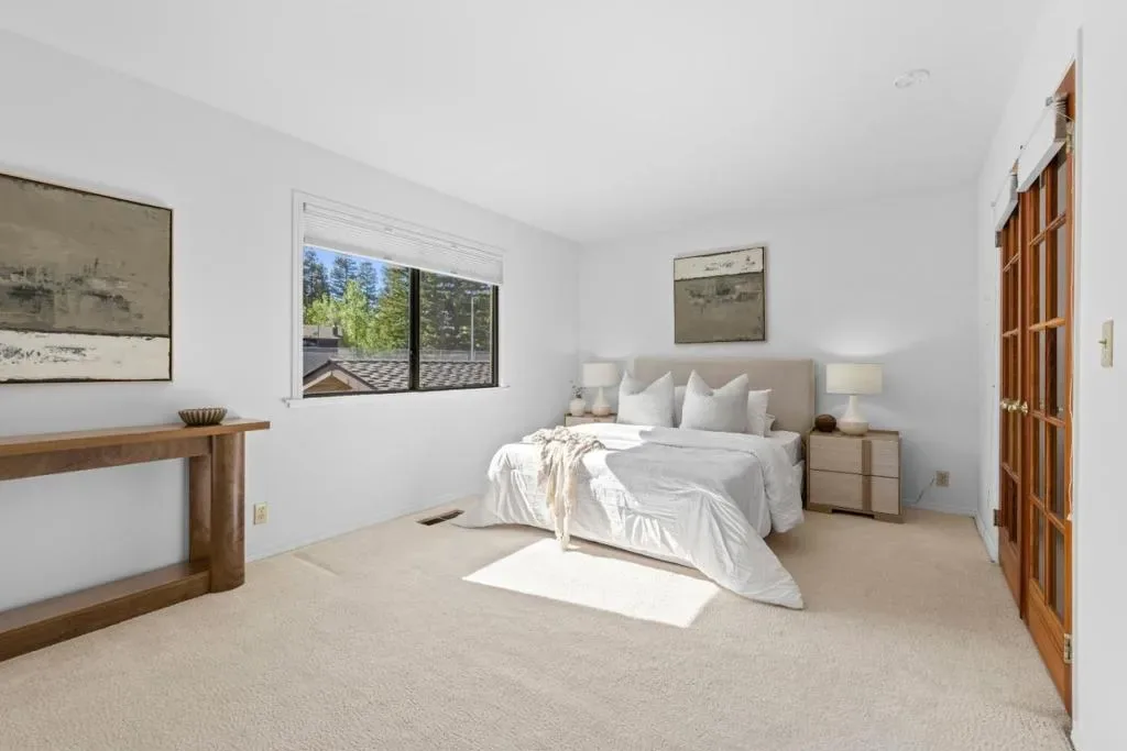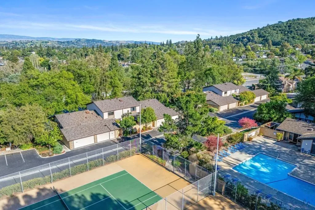Nestled at the base of the Los Gatos hills in the highly desirable Montanas de Los Gatos community, this spacious two-story townhome offers a peaceful, park-like setting surrounded by mature trees, open space, and scenic hillside views, ideally located on the border of Los Gatos and Almaden Valley. The home offers a bright, spacious floor plan with fresh interior paint and a layout that provides comfort and flexibility. The main level includes a kitchen, dining area, laundry room, and half bath. The dining area opens to a private enclosed patio, perfect for relaxing or entertaining, with direct access to the attached two-car garage. Upstairs are two generous primary suites, each with its own private bathroom. One suite features double doors and dual closets, while the second offers additional space ideal for a home office, reading area, or workout space. Additional features include central heating, air conditioning, plantation shutters, and dual-pane windows. The community completed new roofs on all homes and garages in 2025, adding peace of mind for future owners. This beautifully maintained community features lush landscaping, walking paths, floodlit tennis courts, and a sparkling pool, all just minutes from shopping, dining, hiking trails, and convenient commute routes.