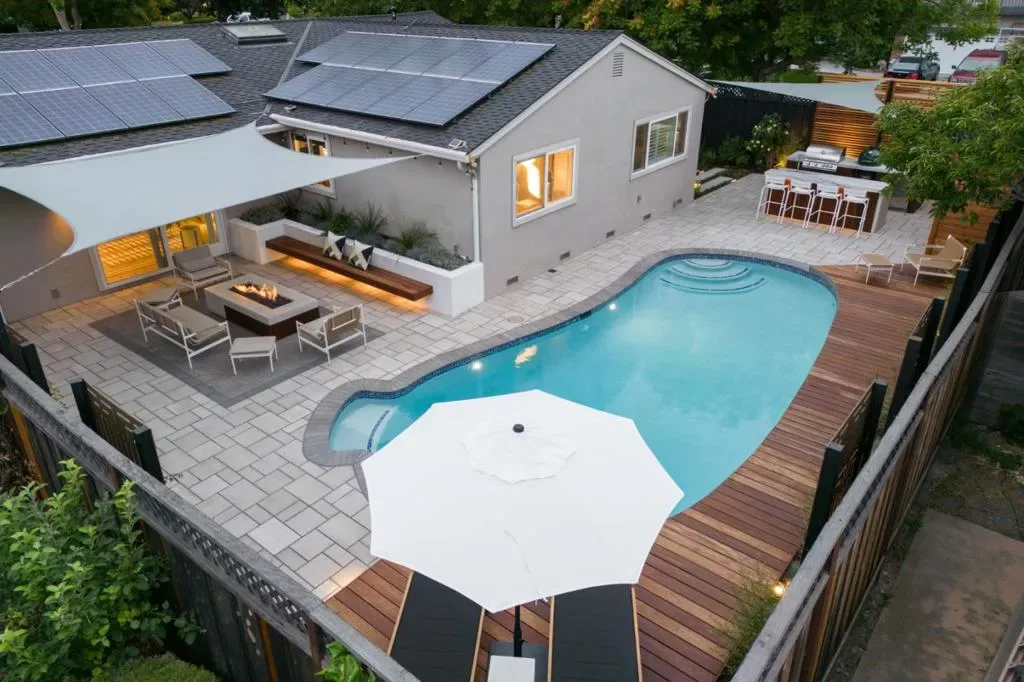 Nestled at the base of the Santa Teresa foothills and with views of lush greenery, this updated home offers modern amenities amongst an idyllic setting and stunning backyard. The kitchen features leathered granite countertops, white shaker cabinetry, with eat at island and dining area. There is a formal living room with a picture window, as well as a step down the family room with a fireplace. The primary suite has a modern updated bath. One bedroom has a built-in Murphy bed with shelving surround. Newly refinished hardwood floors. Other amenities include new HVAC and ducting, dual pane windows, electric car charger, Lutron Caseta switches, leased solar. The backyard was remodeled in 2023 ($350k) and is perfect for relaxing and entertaining with an in-ground pool, paver stone surround, IPE deck lounge area, fire pit with built-in bench. Gorgeous IPE covered outdoor kitchen with quartzite waterfall counters, gas BBQ, ice maker, refrigerator, ready space for Green Egg. Drought-tolerant landscaping, decorative metal art, spacious side yard with turf. Finished garage with epoxy flooring, mini split, and built-in custom cabinetry. Walk to Sakamoto Elem and Santa Teresa High School. Minutes to Santa Teresa Square shops, restaurants, Santa Teresa Co Park trails, Westfield Oakridge.
