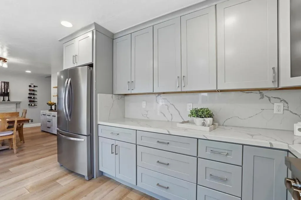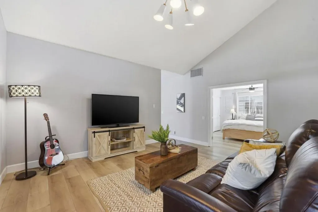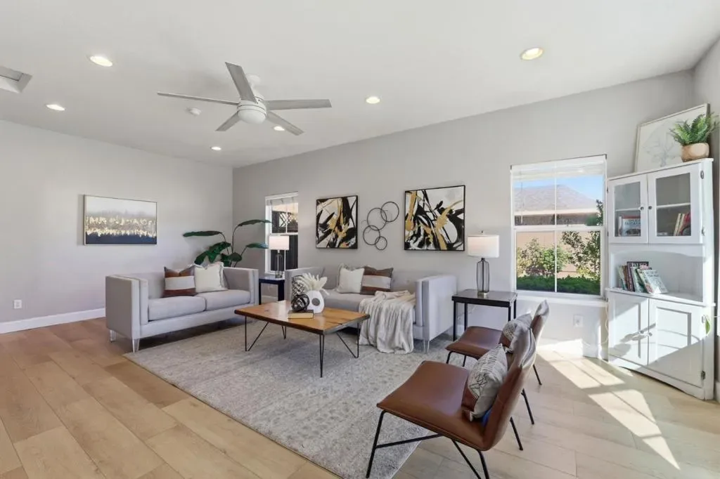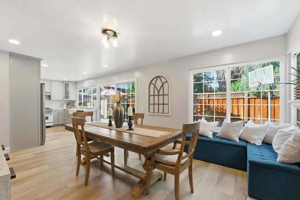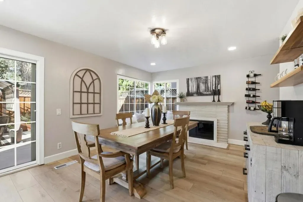 Space & thoughtful updates come together in this 4 bedroom, 2.5 bathroom home offering 2,016 sq ft of living space. The kitchen was remodeled in 2021 & features a 6 burner gas stove, stainless steel appliances, cabinet depth refrigerator, recessed lighting, & a large window bringing in natural light while opening to the dining area. The dining space centers around a fireplace with mantel & includes recessed lighting & a sliding glass door to the backyard. The living room welcomes you with a bay window, recessed lighting, & ceiling fan, while the separate family room adds volume & character with a vaulted ceiling. The primary suite is located on the ground floor. Double doors open to the bedroom, which features a wall to wall closet while the primary bathroom includes dual sinks & a walk in tile shower. An office sits at the front of the home, providing a dedicated workspace. All bedrooms include ceiling fans. Flooring updates include new LVP installed downstairs in 2021 & upstairs in 2026, complemented by 6 inch white baseboards. Additional improvements include a replaced furnace in 2018, fully paid solar added in 2013, & updated electrical circuits & breaker panel in 2021. The backyard is designed for low maintenance enjoyment with cemented areas & a pergola for shaded seating.
