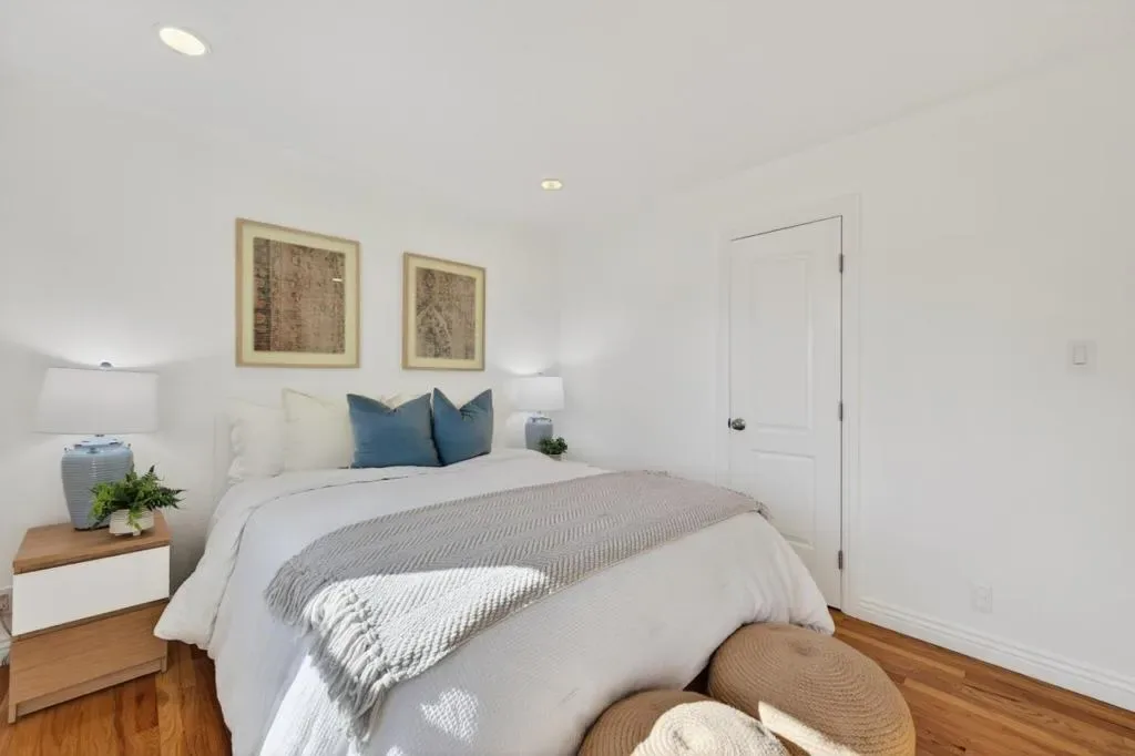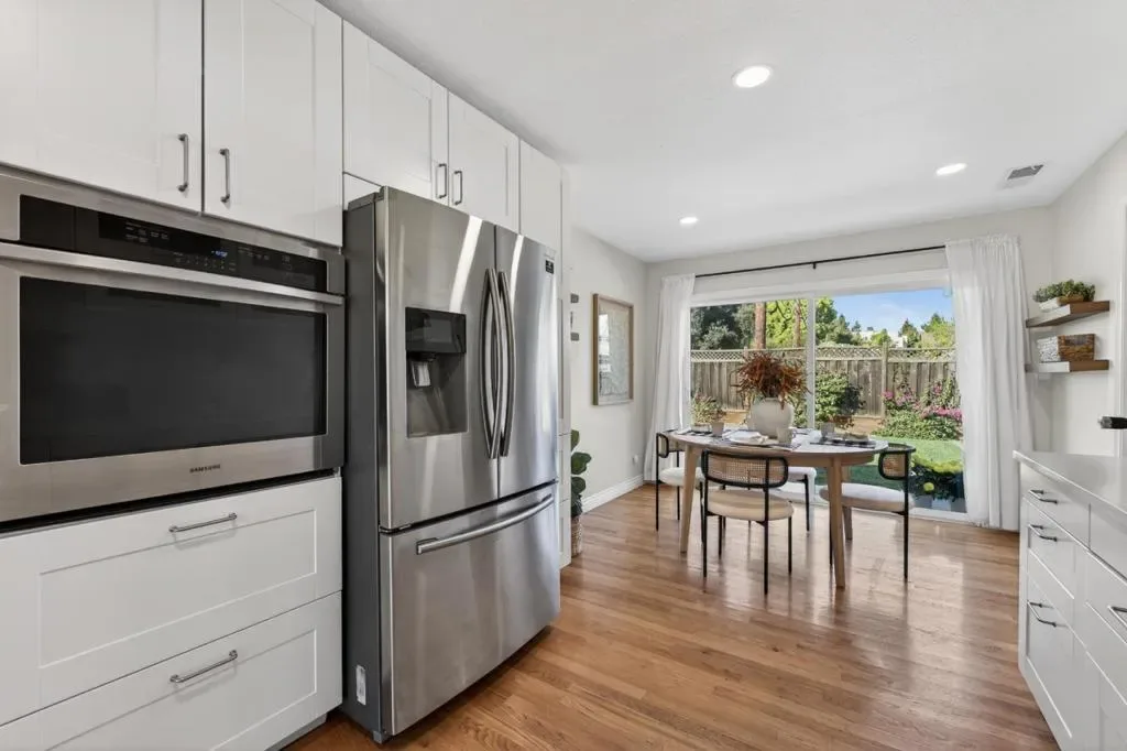 Fully remodeled inside and out in 2022, this beautifully updated Rose Glen home offers nearly 1,600 sq ft of thoughtfully designed living space with 3 bedrooms, 2 1/2 baths, and a 2-car garage. Renovations were completed with permits and feature gorgeous hardwood floors, new windows, and a finished garage that provides excellent bonus space for a gym, playroom, or workspace. The spacious primary suite features a cathedral ceiling, a large walk-in closet, and a well-appointed bathroom. The home’s layout is ideal for both daily living and entertaining, with the kitchen overlooking the backyard for easy indoor-outdoor connection. The newly designed backyard includes a covered patio and lawn, creating a perfect setting for outdoor dining, celebrations, and gatherings. The open flow between the home and yard makes hosting effortless. Located in a quiet neighborhood with minimal traffic, the home enjoys a strong sense of community with friendly neighbors and regular neighborhood gatherings. Two nearby parks with playgrounds are within walking distance, offering easy access to outdoor recreation. While peaceful and tucked away, the location provides quick access to Willow Glen, Rose Garden, Santana Row and Campbell. A truly convenient point for commuting throughout Santa Clara county.