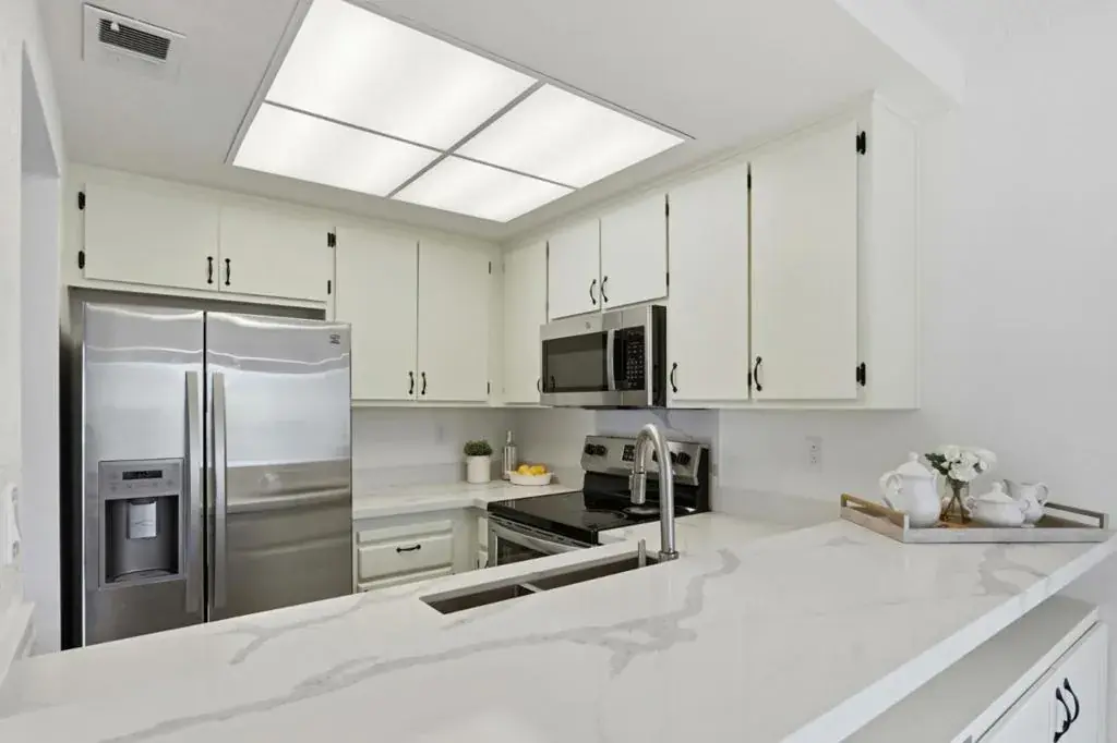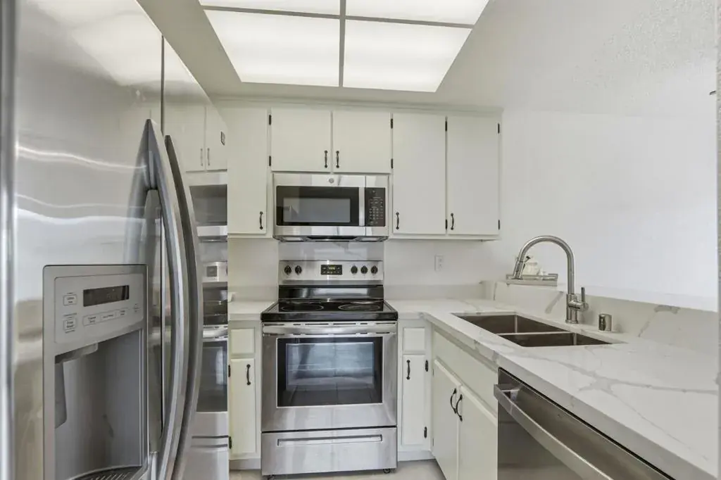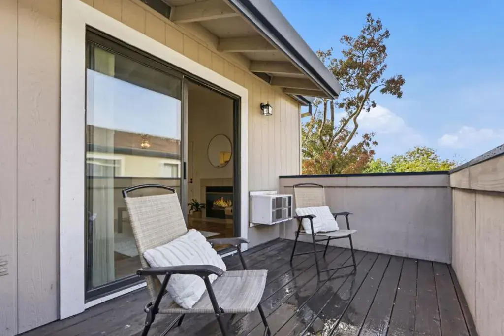 Discover this beautiful, private end-unit 2-bedroom & 2-bath condo in the desirable Carson neighborhood. Nestled on a cul-de-sac in a park-like setting. The spacious living room features vaulted ceilings and a cozy fireplace. Sliding glass doors open to a generous balcony, perfect for relaxing or entertaining, surrounded by mature trees. The bright kitchen boasts new granite countertops, stainless steel appliances, a deep sink, a breakfast bar and separate dining area. The master bedroom includes an ensuite bathroom and walk-in closet, while the second bedroom is ideal for family, guests, or a home office. Both bedrooms feature new flooring. Additional highlights indoor laundry with washer and dryer, fresh interior paint, an assigned carport plus extra parking. A tranquil, well-maintained complex. Conveniently located near VTA Light Rail, major highways 85, 87, 101, Oakridge Mall, Trader Joes, Costco, shopping, dining, parks, trails, and more. Perfectly situated, this is a hidden gem!