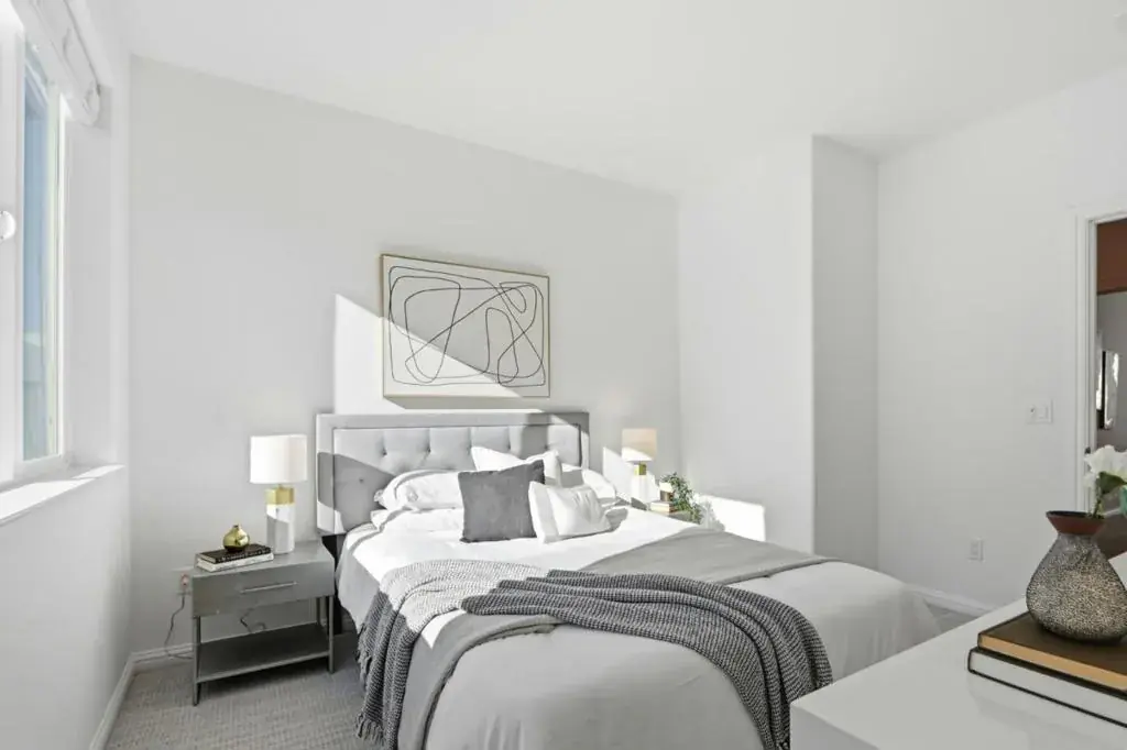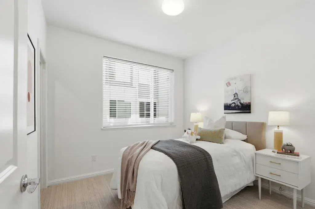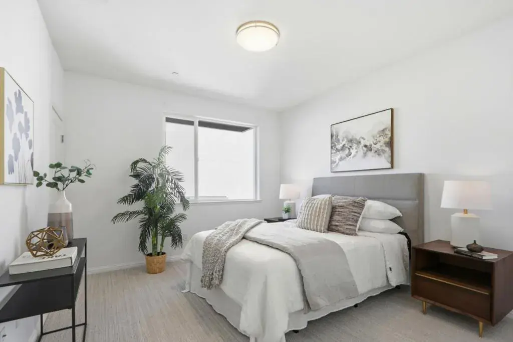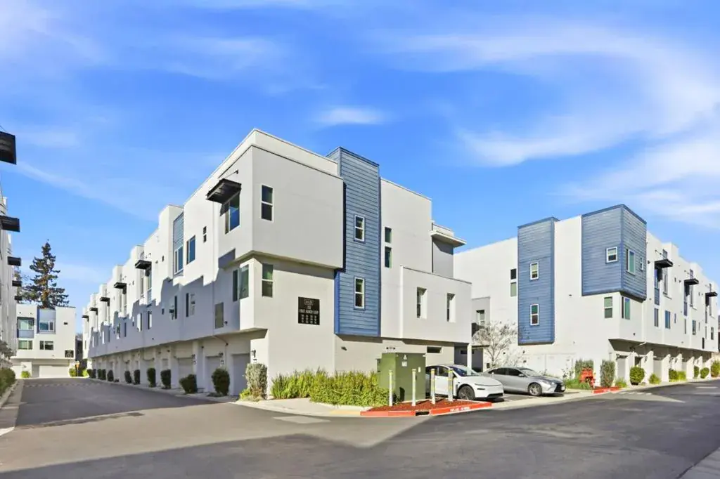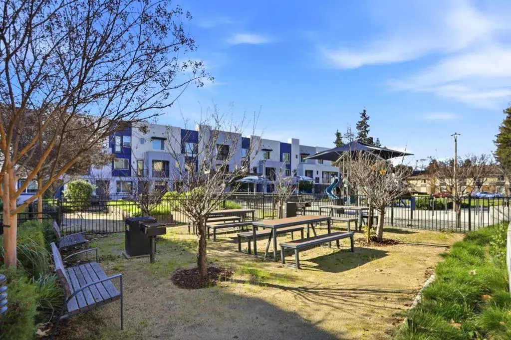 Solar-powered townhome built in 2019 by Pulte (Haven 1L model) in the heart of Silicon Valley. Desirable location with a rare front yard and private balcony overlooking a park, offering open views and privacy. Fresh interior paint and new carpet throughout. Main living level features an open-concept floor plan with a modern kitchen including white cabinetry, quartz countertops, center island with sink, stainless steel appliances, and ample storage. Kitchen opens to dining area and spacious living room. One bedroom and one full bathroom on the main level. Upper level includes two en-suite bedrooms. Primary suite offers two walk-in closets and a bathroom with dual vanities, quartz countertops, and stall shower. Secondary suite features large windows and a full bathroom with shower-over-tub. In-unit washer and dryer located on the upper level. Attached two-car garage with additional storage. Conveniently located near shopping, dining, Berryessa BART, major tech campuses, and with easy access to Hwy 101 and Hwy 680.
