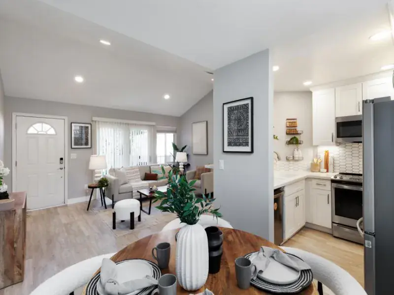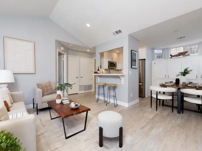 Welcome to this beautifully remodeled upstairs condo in Willow Glen,a bright, one-bedroom, one-bath home that blends comfort and modern style. Step inside to a spacious open floor plan highlighted by vaulted ceilings, new flooring, and contemporary paint colors. The modern kitchen features stainless steel appliances, a reverse-osmosis water system, and ample cabinetry for easy cooking and storage. The bedroom features a huge walk-in closet, and the spa-like bathroom includes an extra-deep soaking tub plus a custom towel closet. For convenience, enjoy in-unit laundry with a washer and dryer, and a private one-car garage for secure parking and storage. The condo is move-in-ready, with new central air conditioning, furnace, water heater, and ductwork throughout. Entertain in the open living and dining areas or enjoy the kitchen’s counter bar and formal dining space. Custom-built-in cabinetry offers extra storage in the dining area. A large sliding glass door opens to a private patio overlooking serene, landscaped grounds. HOA fee covers water, garbage, and exterior maintenance. You’ll also have a dedicated parking spot (#7). Just a short walk from downtown Willow Glen and the Los Gatos Creek Trail, with easy access to Highway 280, Caltrain, and Light Rail, makes commuting simple.
