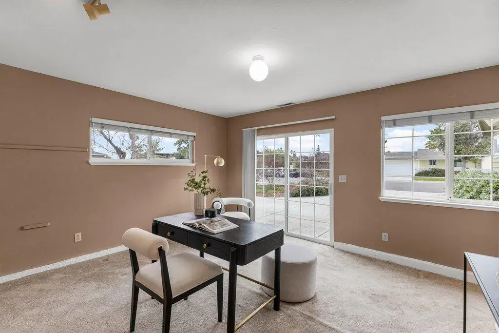 Beautifully remodeled ranch home tucked away on a quiet cul-de-sac in the highly desirable Lynhaven neighborhood of West San Jose. This updated residence blends timeless charm with modern comfort and functionality. The gourmet kitchen is the heart of the home, featuring custom cabinetry, granite countertops, and a tiled dining areaperfect for everyday living and entertaining. Both bathrooms have been tastefully remodeled with custom vanities, quartz countertops, tiled showers, and designer fixtures. Hardwood floors flow throughout the home, complementing the living room’s classic brick fireplace. A spacious family room offers flexible space for gatherings, work-from-home needs, or relaxation. The generous primary suite features a walk-in closet and an ensuite bath with dual sinks and a step-in shower. Additional upgrades include high-efficiency heating and air conditioning. A large laundry room with ample storage connects to a spacious office with a separate entrance and built-in bookcases, ideal for remote work, creative use, or a small business. Plenty of parking allows comfortable living without reliance on a traditional garage. Located near parks, schools, shopping, dining, and major commuting routes, this home offers an ideal balance of convenience and lifestyle.