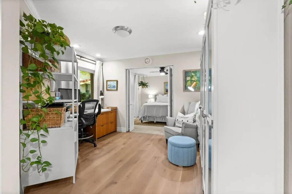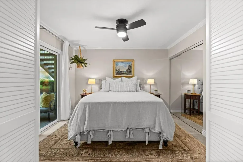 Stunning home, fully remodeled with the highest quality materials and designs. Lovely front patio with a view of the Majestic Oak tree and a view of the 15th hole from your covered back patio. This wonderful end unit features two bedrooms plus a den. The kitchen features high end custom cabinetry, new Quartzite countertops, custom backsplash, stainless appliances, instant hot water heater and a breakfast nook. New beautiful wide plank engineered Euro Oak hardwood flooring. Large primary bedroom and bathroom with a walk-in closet. Remodeled bathrooms with custom wainscoting. Separate laundry room with cabinetry and granite counters. Recently painted interiors with designer paint colors. Updated Raised Panel interior/exterior doors. Updated baseboards and crown molding. Recessed lighting with dimmers and under counter lights. Electric fireplace with fan and remote. Updated dual paned windows and sliding doors. One car attached garage with attic storage, and a one car detached carport. Stays cool and comfortable in the summer. All of this in the resort style living at The VILLAGES GOLF & COUNTRY CLUB, one of the only Guard Gated 55+ Communities in The Bay Area. Live in a resort like environment enjoying golf, tennis, pickle ball, pools, fitness center, clubs and much more
