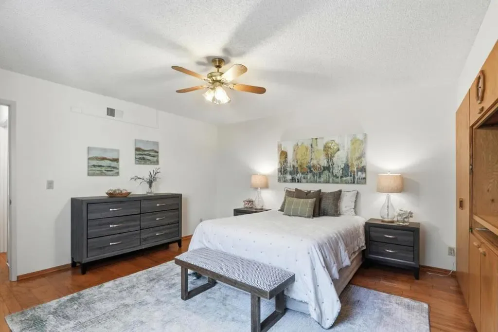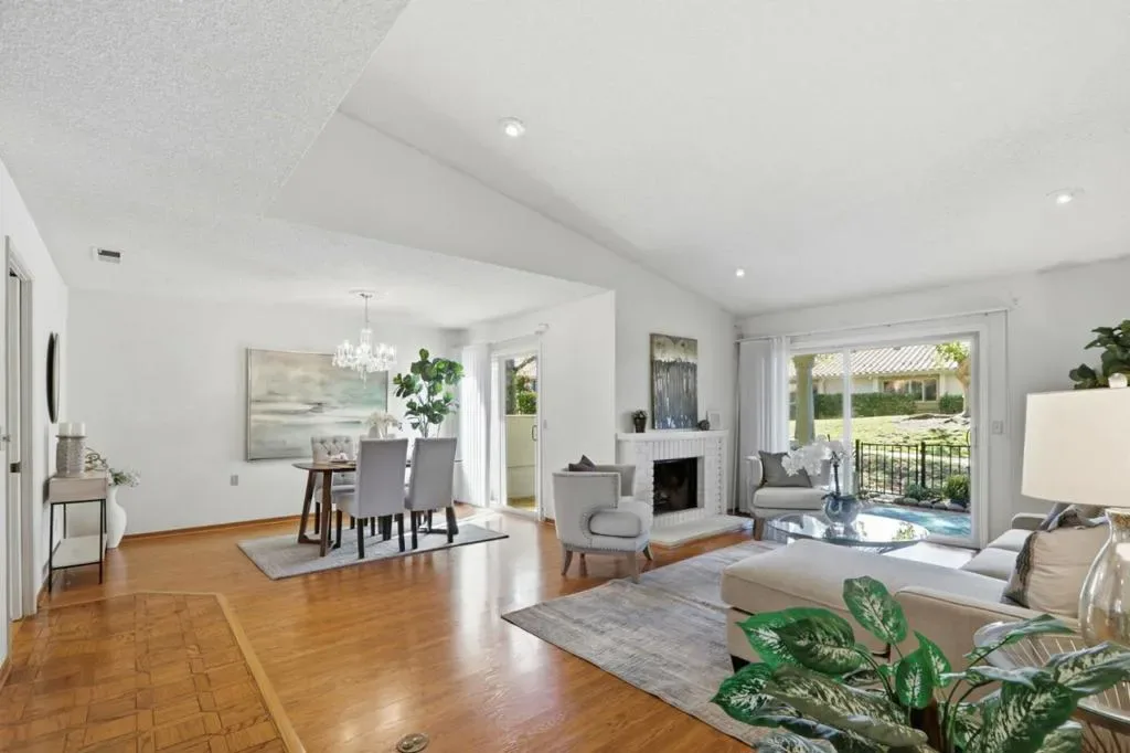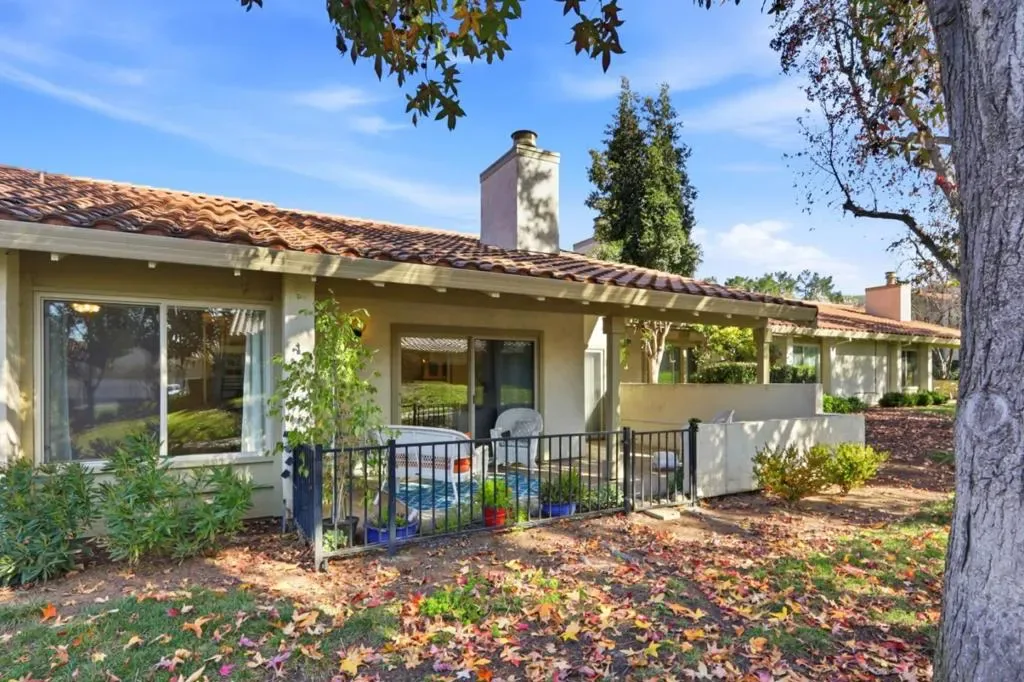 Fantastic Single Level – NO STAIRS Condo Villa within The Villages Golf & Country Club, a gated 55+ Community located in the Evergreen Hills of Silicon Valley. This light and bright 1497sf home is located in Hermosa Village with spacious Living room with high ceiling and comfy fireplace plus Dining room for entertaining — both with sliders to large back patio *** Great kitchen with lots of cabinetry, pantry, breakfast nook and built in hutch *** Primary bedroom ensuite has slider to back patio and 2 large closets *** Guest bedroom has built in cabinetry plus access directly to and from the garage *** Inside laundry room with washer & dryer is attached to the Guest bathroom with Hall linen closet *** Two garages and lots of storage cabinets with slider to front courtyard. Very quiet cul-de-sac surrounded by lush trees and walkways. ** The Villages offers all the country club amenities you could want and deserve to enjoy: 18 and 9 Hole Golf, Tennis & Pickleball courts, Bocce, Billiards, Fitness Center, Hiking Trails and Clubs for any interests. Also available is a Post Office, Library, Wood Shop, Potteryand Arts & Crafts rooms *** Beautiful Clubhouse for major events & holidays, Fine Dining with views plus casual Bistro & Patio for fun dining ***** Your new Lifestyle awaits!