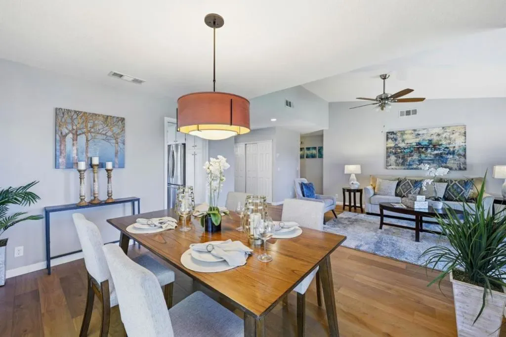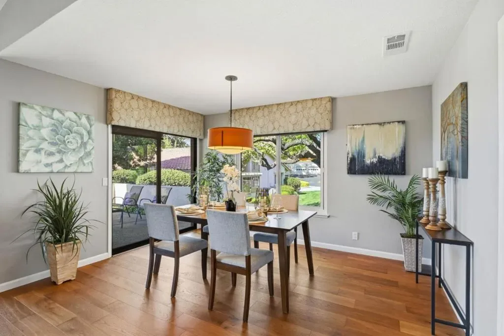 Turnkey, light-filled 1,497 sq. ft. energy-efficient home with owned solar in the desirable Village Hermosa neighborhood of The Villages Golf and Country Club, Silicon Valley’s premier 55+ gated active-adult community offering resort-style amenities. **Elegantly maintained**, this beautifully updated residence offers 2 bedrooms and 2 baths with stylish upgrades and move-in-ready convenience. The inviting open layout is ideal for everyday living and entertaining and is highlighted by a cozy gas fireplace. Remote-control window shades with elegant cornices enhance the dining room, living room and bedrooms, offering comfort and convenience. Skylights in the hallway and bathrooms bring in abundant natural light, creating a bright and airy atmosphere throughout the home. Residents enjoy exceptional amenities including a championship golf course, clubhouse restaurant and Bistro, fitness center, pro shop, four swimming pools with hot tubs, tennis, pickleball and bocce courts, scenic hiking trails and more than 60 clubs and activities.