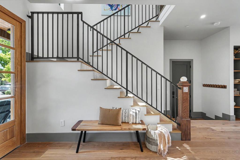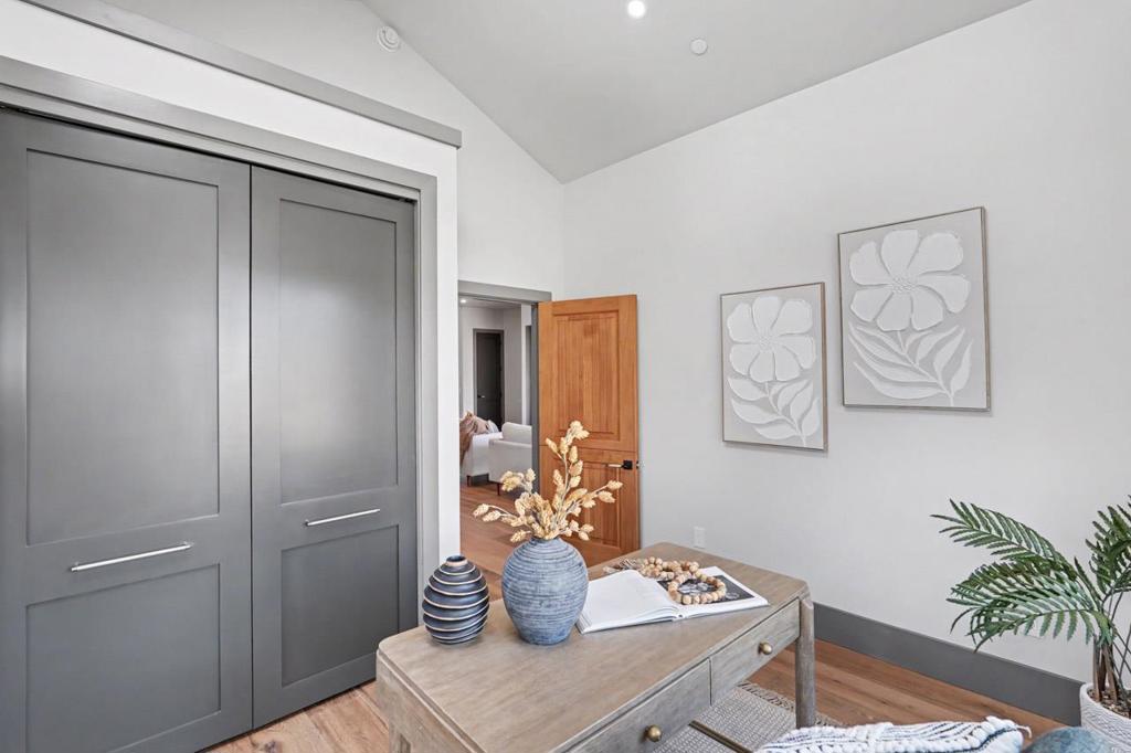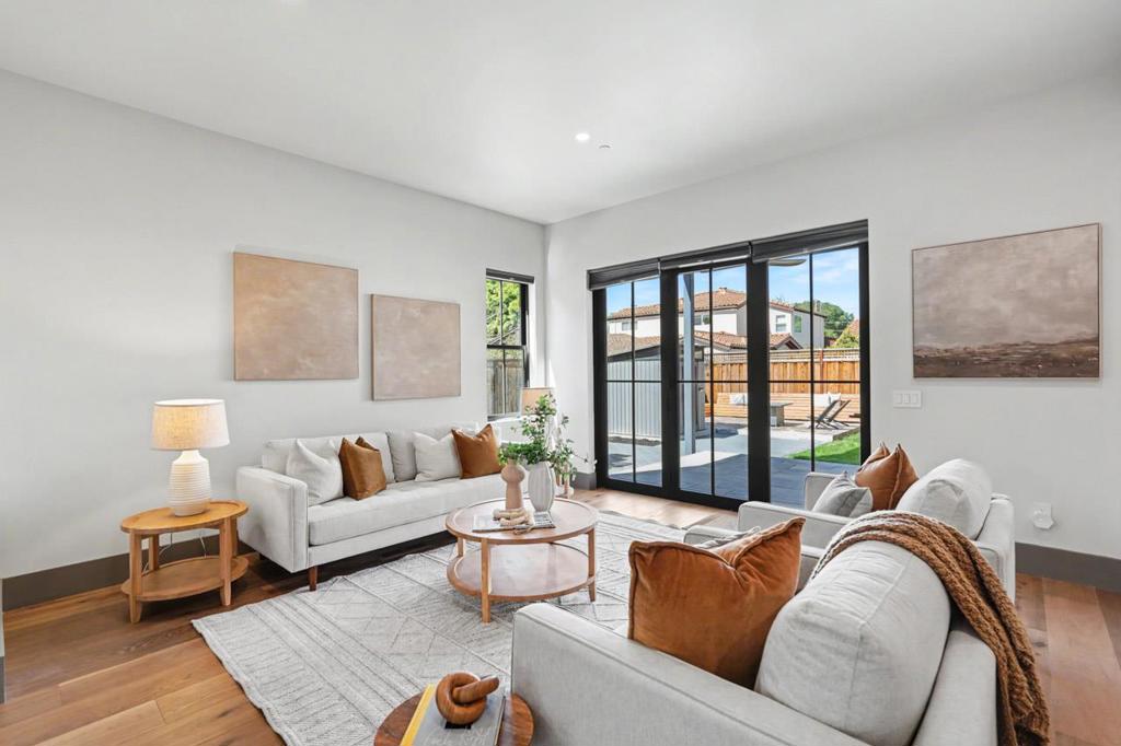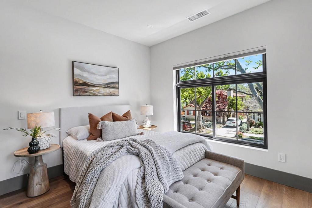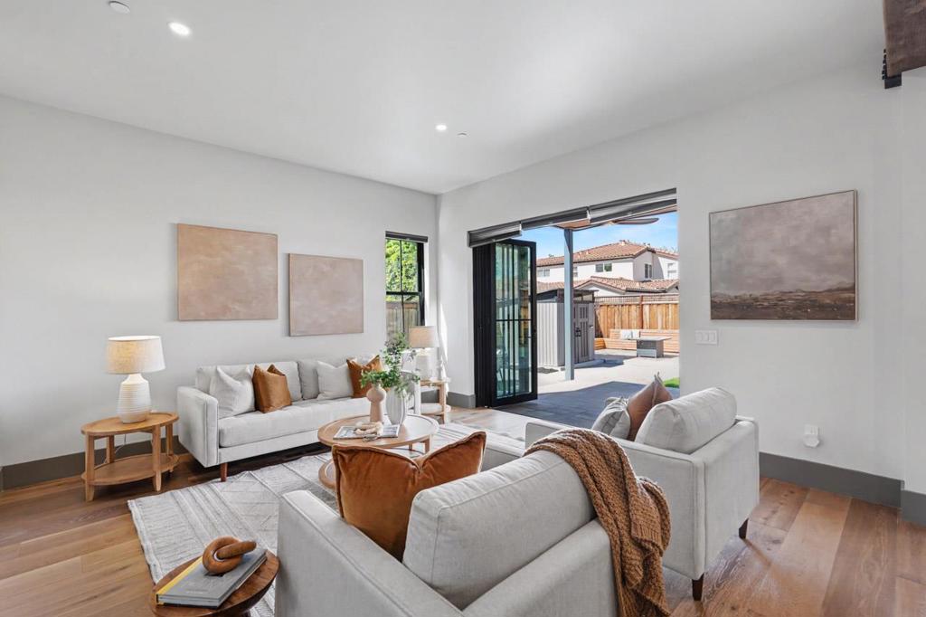Exquisite modern farmhouse completed in 2025 on a quiet Willow Glen street, blending contemporary architecture with warm, curated finishes. Soaring ceilings, expansive windows, and an open-concept layout fill the home with natural light and offer effortless indoor-outdoor living. At the heart of the home, a stunning chef’s kitchen features custom cabinetry, elegant herringbone backsplash, a generous center island, and premium stainless steel appliances, flowing beautifully into the dining and living spaces. The thoughtfully designed floor plan includes a main-level 1-Bed/1-Bath. Upstairs are two additional bedrooms, a luxurious primary suite with a private balcony for sunset views, a versatile loft, and finished bonus attic space. Impeccable craftsmanship is evident throughout, with high-end finishes and designer details at every turn. Modern amenities include a laundry room w/ laundry chute, an attached tandem garage (approx. 341 sq ft), owned solar, EV charger, and a built-in outdoor barbecue. Enjoy the welcoming front porch for morning coffee and the backyard patio for relaxation and entertaining. Ideally located moments from Downtown Willow Glen’s Lincoln Avenue shops, restaurants, River Glen Park, Farmers Market, and Safeway Plaza. Close to schools and pickleball courts.