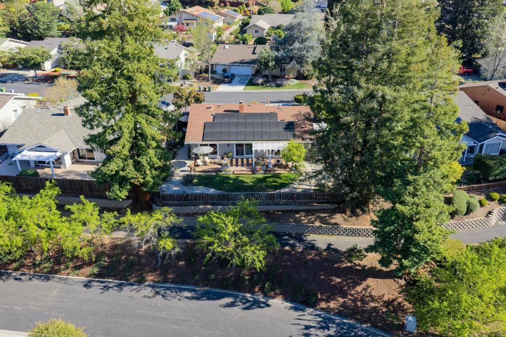 This thoughtfully designed 2-bedroom + office, 2-bath home offers comfort, privacy, and connection to community. Hardwood floors flow through an open living and dining area anchored by a striking fireplace wall with open shelving and a generous hearth. Large glass doors open to a beautifully landscaped backyard with unobstructed hill views and no rear neighbors. Outdoor spaces include decking, gardens, trees, and two expansive side yards, one with gated patio access from the breakfast nook. The kitchen features abundant cabinetry, pantry storage, a breakfast nook, and separate dining area for flexible living and entertaining. The remodeled primary suite offers a spacious walk-in closet, designer finishes, natural light, and backyard access through sliding glass doors. The second bedroom connects to a versatile office space with built-in desk and courtyard access. Additional highlights include an attached 2-car garage with direct kitchen entry, attic storage, optional indoor laundry closet and strong curb appeal with layered landscaping and new paint. Located in The Villages with low HOA dues, this home blends privacy with access to an active community. Nearly $200,000 in upgrades and large solar capacity add exceptional value to this already amazing home!