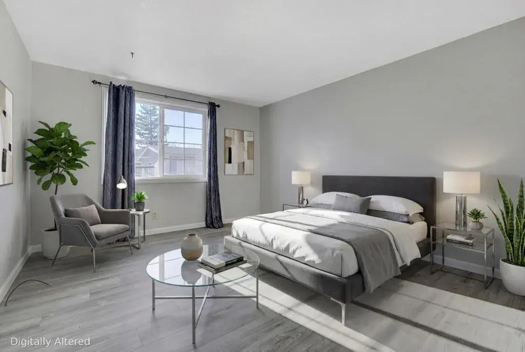 Bright and spacious 3/2 in the heart of Silicon Valley . Step into a wide spacious living area with many windows and a wall for a huge TV, and a cozy fireplace The open kitchen showcases a skylight, granite countertops, wood cabinets, a gas stove, dishwasher, and refrigerator. The dining area is next to the to the kitchen making it great for entertaining or family gatherings. The flooring throughout is Luxury Vinyl Planking that is sturdy and beautiful. The spacious primary bedroom suit features a bathroom with an oversized tub and separate shower stall and ample closet. Additional amenities include a newer A/C, central heating and an inside laundry area . The complex includes three community swimming pools and spas, club houses, basketball courts, and play areas for kids and dogs. Silicon Valley Village is a short distance to major freeways including 87, 280 and 880, BART, Light Rail, Santa Clara Square, and major tech companies like Nvidia, Google, Cisco, and Oracle. Come make this centrally located and beautifully updated property yours!