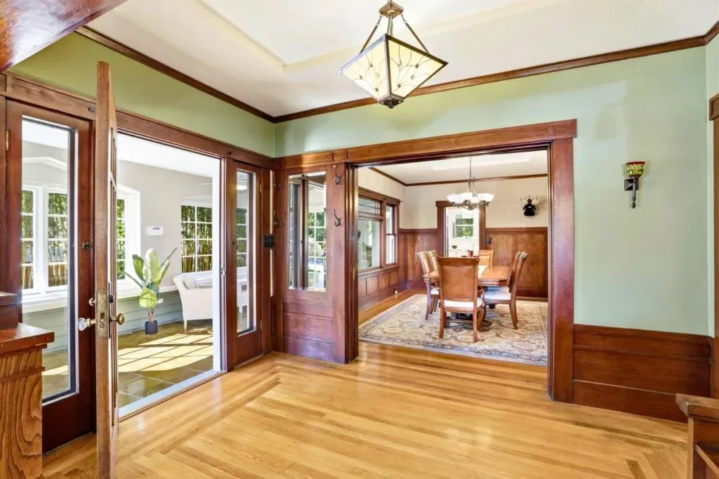 Framed by a row of soaring palms on a classic sidewalk-lined street in highly sought after Naglee Park Neighborhood, this beautifully preserved Craftsman welcomes you with timeless character and warmth. Inside, hardwood floors, stained-glass accents, and handcrafted wood details create inviting sense of history and home. The enclosed sun room, lined with windows, offers the perfect morning retreat, flowing into a bright breakfast room and the heart of the home. The spacious living room centers around a warm fireplace with stone mantel, built-ins, and cozy seating, while the formal dining room showcases period cabinetry and elegant millworkideal for gatherings both large and intimate. The updated kitchen blends vintage charm with modern convenience, featuring Carrara marble counters, Craftsman cabinetry, and premium appliances. All three bedrooms are on one level, while the remodeled bath preserves classic style with timeless finishes. Outside, the private backyard offers lawn space and mature citrus trees, creating a peaceful setting for relaxing or entertaining. With central A/C, large basement storage, a detached two-car garage, and a prime location near SJSU and downtown amenities, this is a home that truly captures the spirit of San Joses most beloved historic neighborhood.