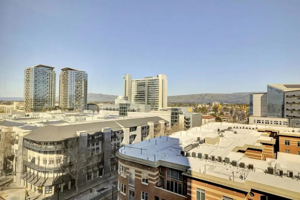 Experience elevated city living in this stunning south-facing condominium, where expansive picture windows frame sweeping views of the San Jose skyline and the mountains beyond. This move-in-ready home features fresh interior paint and brand-new bedroom carpeting. The open-concept heart of the home shines with Brazilian cherrywood flooring, granite slab countertops, and premium stainless steel appliances. Retreat to a primary suite designed for comfort, boasting picturesque views, dual spacious closets, and a refreshed ensuite with dual vanities. The unit also features an in unit laundry and gated parking. Enjoy 24/7 concierge security and world-class amenities, including a heated saltwater lap pool, a newly updated fitness center, and a rooftop deck perfect for 4th of July fireworks. HOA also includes Water & Garbage. Host guests in the clubhouse kitchen or the outdoor BBQ lounge. Steps from San Pedro Square, SJSU, Christmas in the Park, SJ Convention Ctr & SJ Museum of Art. With Adobe, Zoom, & PayPal nearby, & effortless access to VTA, Caltrain, freeways (280/87/101), SAP Ctr & Airport. Near Whole Foods, Original Joes, Il Fornaio, La Victoria Taqueria. Open House Saturday 03/21 & Sunday 03/22 from 1-4 PM.
