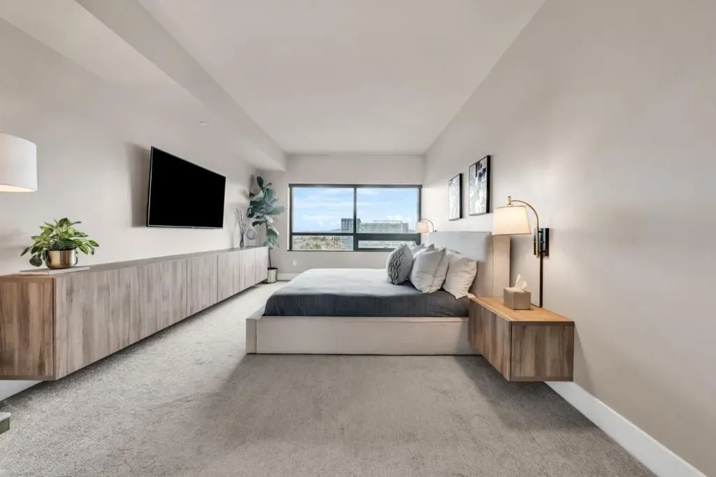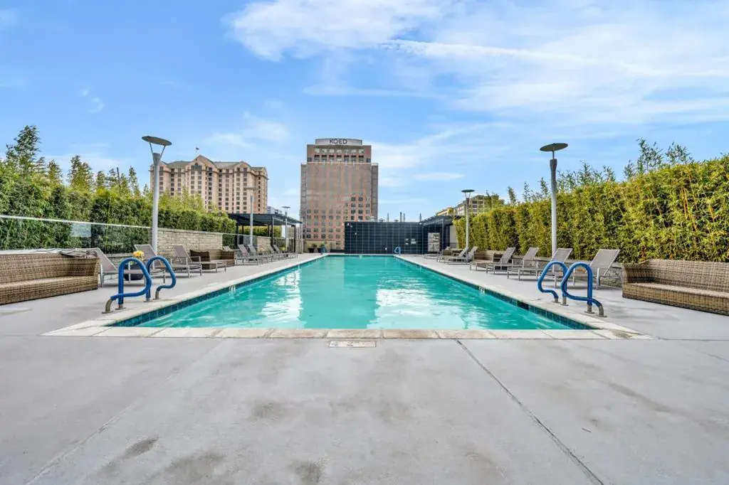 Elevate your lifestyle in this stunning luxury high-rise condo, a masterpiece of modern elegance and refined living. Nestled in the heart of Downtown San Jose, this exceptional residence offers unparalleled panoramic views, stretching across the city skyline and beyond. Designed with sophisticated high-end finishes, this condo boasts an open-concept living space adorned with floating shelving units that blend seamlessly with the contemporary aesthetic. The state-of-the-art floating TV media center serves as the focal point of the living area, delivering both function and flair. The gourmet kitchen is a culinary dream, featuring top-tier stainless steel appliances, sleek quartz countertops, and custom cabinetry. The spa-inspired primary suite offers a tranquil escape with a luxurious en-suite bath, a soaking tub, and a spacious walk-in closet. Indulge in world-class amenities, including a state-of-the-art fitness center, a sparkling swimming pool, an upscale clubhouse, a billiards room, and an outdoor gathering space perfect for entertaining under the stars. With unmatched walkability to the finest dining, shopping, and cultural hotspots, this is urban luxury at its finest. Experience sophistication, style, and convenience all in one place.