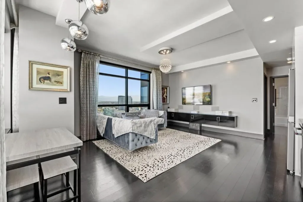 Welcome to your dream home in the sky! This stunning 2-bedroom, 2-bath luxury condo is a premium corner unit boasting sweeping views of the hills and city skyline. Located on the desirable, Southeast corner of the building you will enjoy the morning sun and you are sheltered from the hot, afternoon sun The professionally designed living space is adorned with high-end finishes and modern touches. Massive windows (with automated blinds) flood the home with natural light and boast breathtaking panoramic vistas with the privacy of the 19th floor. The gourmet kitchen features top-of-the-line stainless steel appliances, quartz countertops, perfect for entertaining. The primary suite is a private retreat with a lavish ensuite bath, including a soaking tub, glass-enclosed shower, and dual vanity. The second bedroom is equally inviting, ideal for guests or a home office. As a resident, enjoy luxurious amenities: state-of-the-art fitness room, sparkling swimming pool, and a swanky Skydeck on the 21st floor to enjoy the stunning sunset views. This exceptional condo offers an unparalleled lifestyle of luxury, endless views, and convenience. Don’t miss the opportunity to own this spectacular residence. Check out The 88 and experience high-rise, luxury living at its finest!