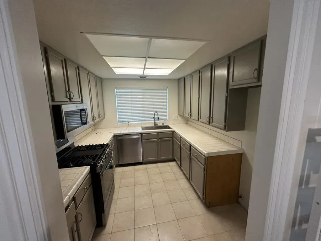 Dont miss this incredible opportunity to own a spacious, single-level 2 bed, 2 bath home with an attached 2-car garage in a well-maintained and desirable complex! This end unit offers privacy and a generous back and side yard, giving it the feel of a single-family home with the ease of low-maintenance condo living. Step inside to soaring vaulted ceilings in both the living room and primary suite, creating an open, airy atmosphere. The kitchen features beautiful, real wood cabinetry, abundant counter space, and excellent natural lightperfect for cooking and entertaining. The attached 2-car garage includes ample built-in storage shelving, providing plenty of room for organization. Located in a quiet, established community with beautifully maintained grounds, this home offers both comfort and convenience