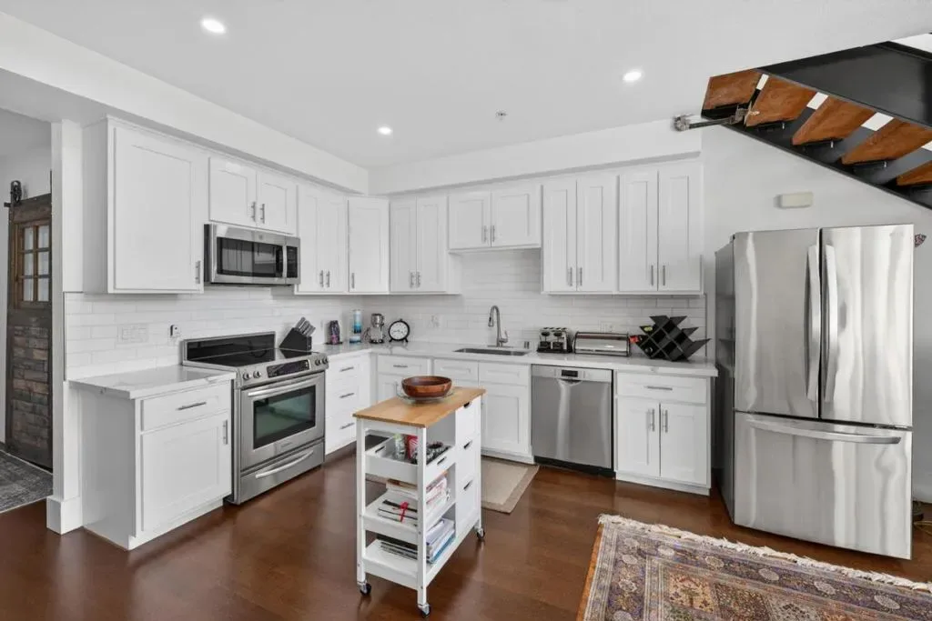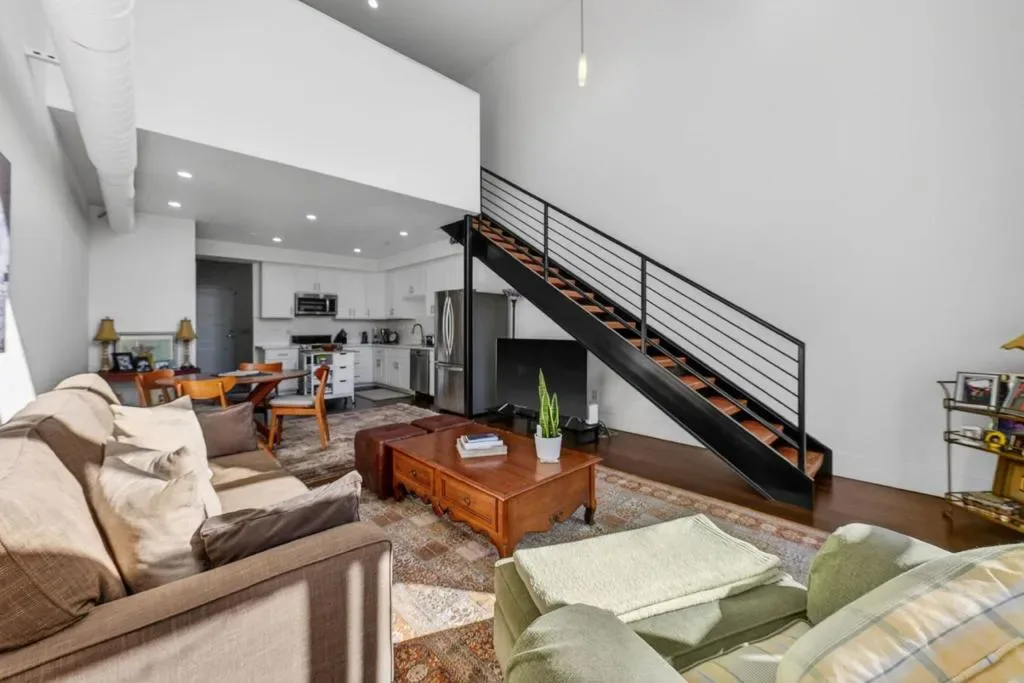 The Lofts of the Alameda: TOP FLOOR Urban loft living w/ two deeded parking spaces in an unbeatable location. Tucked inside a private, gated community, this 2006-built residence blends modern design w/ everyday convenience. The open-concept floor plan features soaring 19-foot ceilings, abundant natural light, and striking architectural details. A versatile bonus den w/ a custom barn door offers the perfect space for a home office or additional storage. The fully remodeled kitchen showcases newer cabinetry, updated countertops, and stainless-steel appliances. Upstairs, attached to the loft bedroom, you will find the en-suite bath has been beautifully renovated w/ a double vanity and sleek, modern shower surround. Additional highlights include wood flooring, a venting skylight, industrial-style concrete staircase, air conditioning, a spacious private balcony w/ storage closet, and two dedicated parking spaces. A short stroll to the SAP Center, Diridon Caltrain Station, VTA, Guadalupe River trails, coffee shops, wine bars, restaurants, CVS, and Whole Foods w/ its rooftop beer garden. The Rose Garden and Coleman Shopping Center are just minutes away, and the future BART hub at Diridon adds even more value. Ideally situated on North Morrison – offering both privacy + proximity.