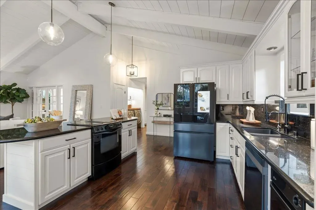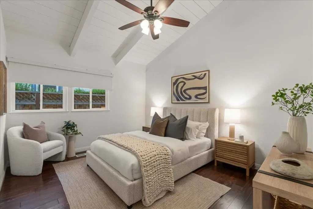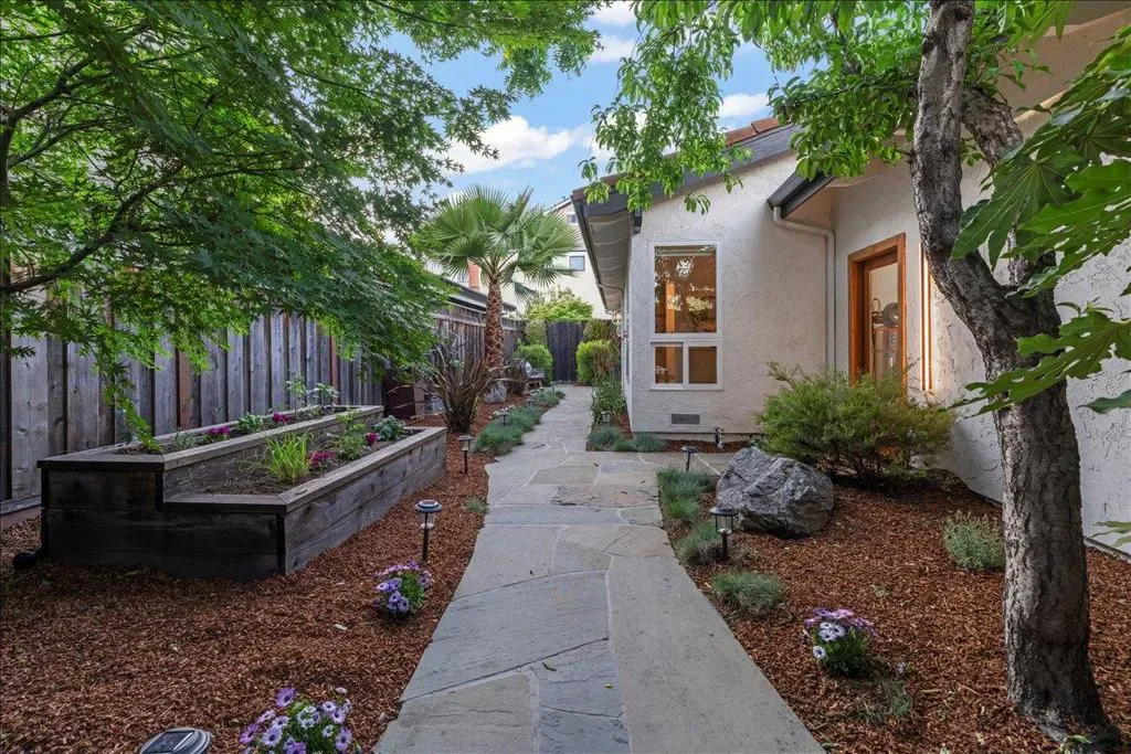 Ideally located just moments from the charm of Downtown Willow Glens Lincoln Ave shops, dining and parks, fully setback from the street, this Magnolia farmhouse-inspired home offers exceptional walkability while providing a sense of calm and retreat. The sought-after open-concept floor plan showcases a custom open-beam vaulted ceiling that anchors the spacious main living area, complemented by designer lighting, granite countertops, gas fireplace and hand-scraped Acacia walnut hardwood flooring. Over $200K in thoughtfully executed improvements provides turnkey living. 2026: new interior paint, landscape refresh, new light fixtures in primary and dining area. 2023: fully reimagined 537 sq ft garage 2019: comprehensive renovation including kitchen, fireplace, guest bath, laundry, flooring, exterior paint, new gutters, along with additional upgrades in 2014. Beyond design, the investment is substantial and intentional: new HVAC and ducting, water softener/ RO filter, upgraded electrical, smart home features, remodeled kitchen and baths and large bedrooms featuring closet organizers and window treatments. Outdoors, professionally curated grounds include over $50K in landscaping, flagstone hardscape, irrigation and full redwood fencing, creating a lush, functional, and peaceful yard.