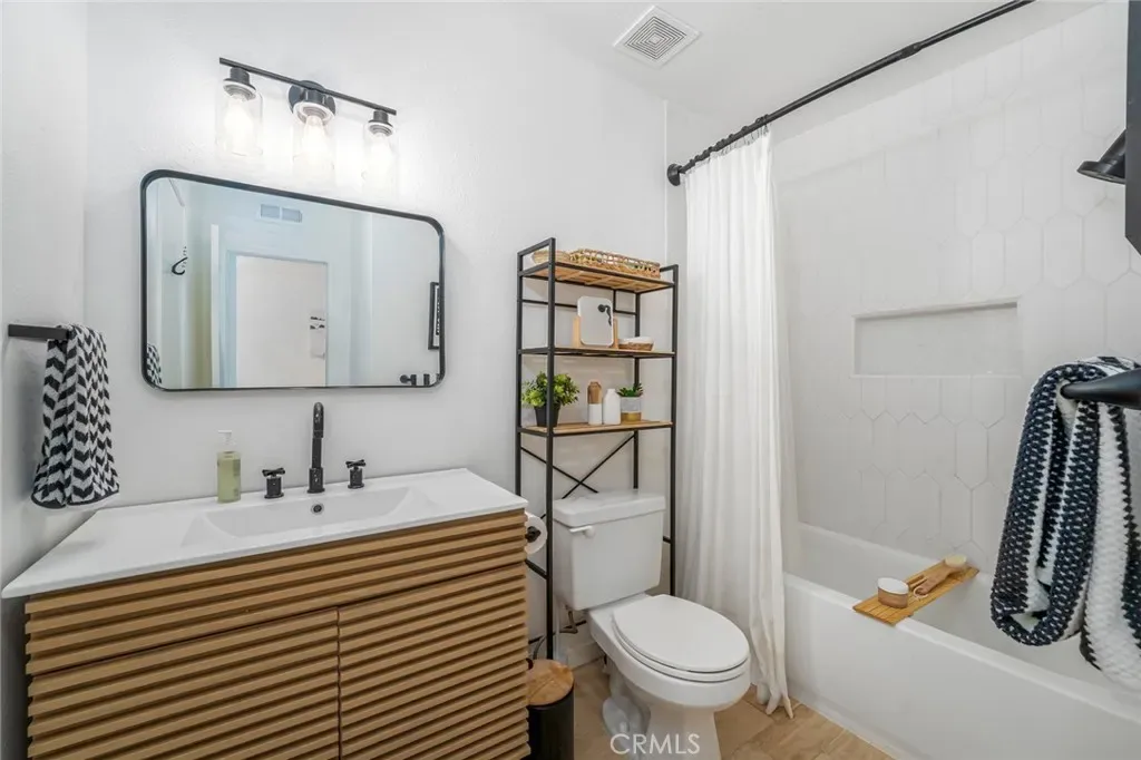 Are you looking for the perfect beach close retreat, primary residence or investment property in one of South Orange Counties desirable beach close cities? Just listed, this spacious 3 bedroom, 1 bath home is located just 11 minutes from Doheny State Beach! Thoughtfully upgraded thru-out and offering a generous 1,012 sqft of living space. The home offers exceptional amenities including a private garage, spacious enough for storage and includes an automatic garage opener for convenient access, an in-unit laundry closet with a full-size washer & dryer-included, AND a very large fully gated and private deck with generous space for outdoor dining/seating. Open the doors to your private patio to enjoy great in-door out-door access between the living area and patio for gatherings, serene relaxation or to take advantage of So Cals year round mild weather with your own private outdoor living or dining room if you choose! Upgrades abound, including new kitchen appliances, refrigerator, stove & dishwasher, all included in the purchase. New kitchen tile floors, counter tops, kitchen sink, faucet and upgraded paint and hardware on the kitchen cabinets giving the space a fun beach vacation vibe. An expansive window and sliding door to the outdoor patio floods the main living area with natural light. A large open living room transitions seamlessly into the dining area and roomy kitchen. Laminate wood-look flooring flows thru all rooms with tile in the kitchen and bathroom. The three bedrooms are complimented by generous closets for storage. The bathroom has been tastefully designed and remodeled with on trend selections including a new tub, tile, vanity, faucet, mirror and vanity light. New light fixtures inside and out, plus new door hardware, and new electrical plugs outlets in every room. The master bedroom has direct ensuite access to the bathroom as well as a secondary main hallway access. The home has central heating and a mini-split a/c unit in the main living space. The Community includes two pools and a playground too!