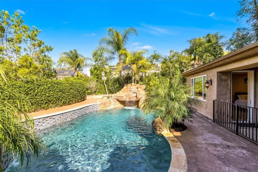 Discover unparalleled luxury living in this meticulously maintained semi-custom estate, ideally situated on a premier 22,000+ sq ft lot within the exclusive gated community of Capistrano Estates. Showcasing timeless Mediterranean architecture, this impressive 4,696 sq ft residence offers exceptional craftsmanship, thoughtful design, and effortless indoor-outdoor living. The highly sought-after floor plan features 5 bedrooms and 4 full bathrooms in the main home, including a desirable main-level bedroom and bath, plus two private ensuite casitas—ideal for guests, multigenerational living, or flexible work-from-home space. A grand foyer, soaring vaulted ceilings, formal living and dining rooms, and abundant natural light create an elegant yet welcoming ambiance throughout. The chef’s kitchen is beautifully appointed with premium stainless steel appliances, warm custom cabinetry, granite countertops, a walk-in pantry, and an oversized center island, flowing seamlessly into the home’s gathering spaces for everyday living and entertaining. Upstairs, the luxurious primary suite offers a peaceful retreat with a private walkout deck overlooking the backyard, while additional bedrooms include an ensuite and a Jack & Jill layout. Designed for entertaining, the resort-style backyard showcases a custom pool and spa with waterfalls, a fully equipped outdoor kitchen with 7-burner BBQ, refrigerator, microwave, and 65” TV, plus a 600+ bottle custom wine room. A three-car garage fully paid solar, custom built-ins, and generous storage add comfort and efficiency. Residents enjoy access to nearby walking, hiking, and equestrian trails, along with San Juan Capistrano’s historic charm, dining, and shopping. Low HOA and no Mello-Roos. A rare opportunity to own a truly exceptional home in one of the area’s most coveted communities. Welcome Home!
