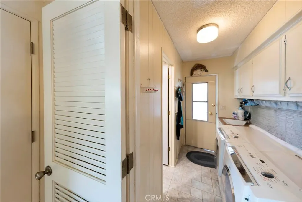 The interior laundry room comes equipped with a washer and dryer. The guest bath is also large and includes a convenient “Jack & Jill” setup, providing easy access from both bedrooms.