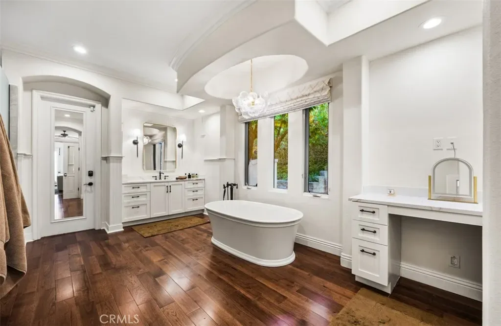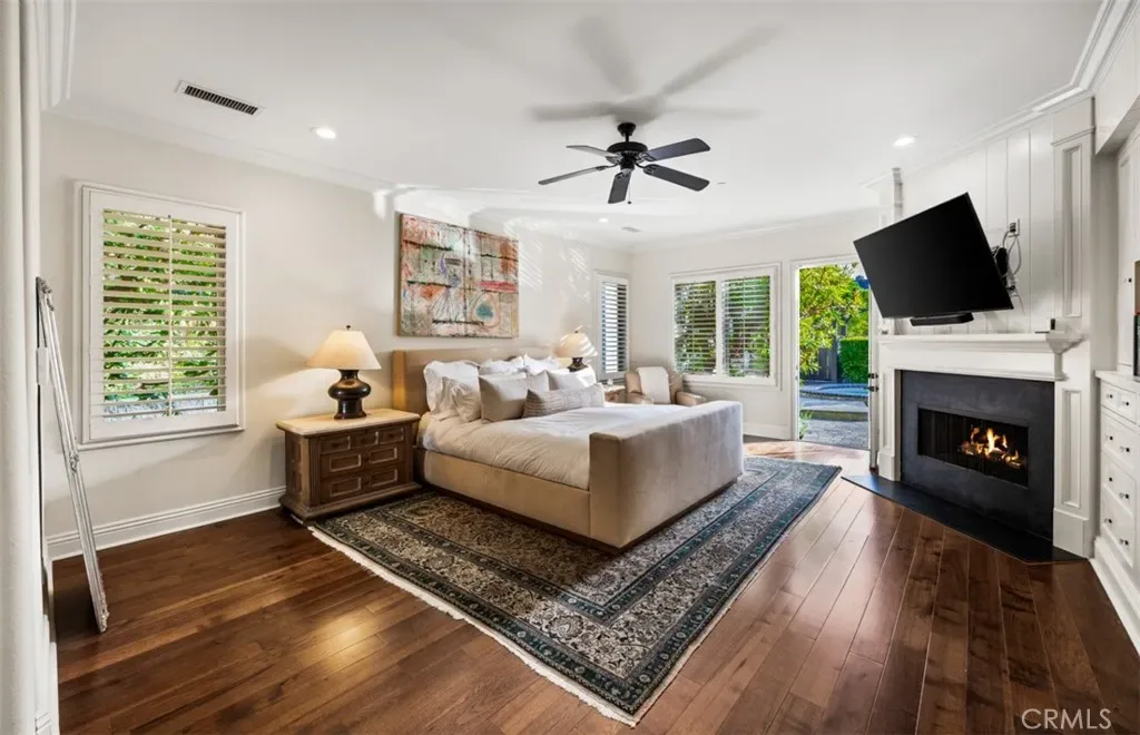 At the heart of the home, the chef’s kitchen is as beautiful as it is functional — centered around a generous island and complemented by expansive counter space, a walk-in pantry, and top-of-the-line appliances designed to inspire culinary creativity. The main-floor primary suite feels like a private sanctuary, complete with custom built-ins, a romantic fireplace, and a spa-inspired bath featuring dual vanities, a soaking tub, and an oversized walk-in closet.