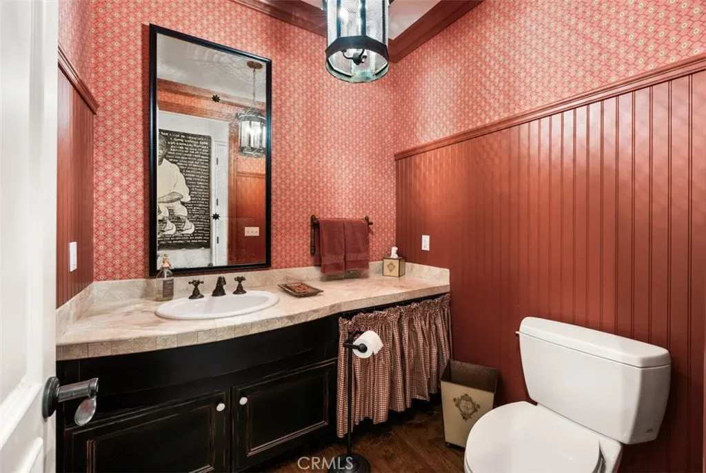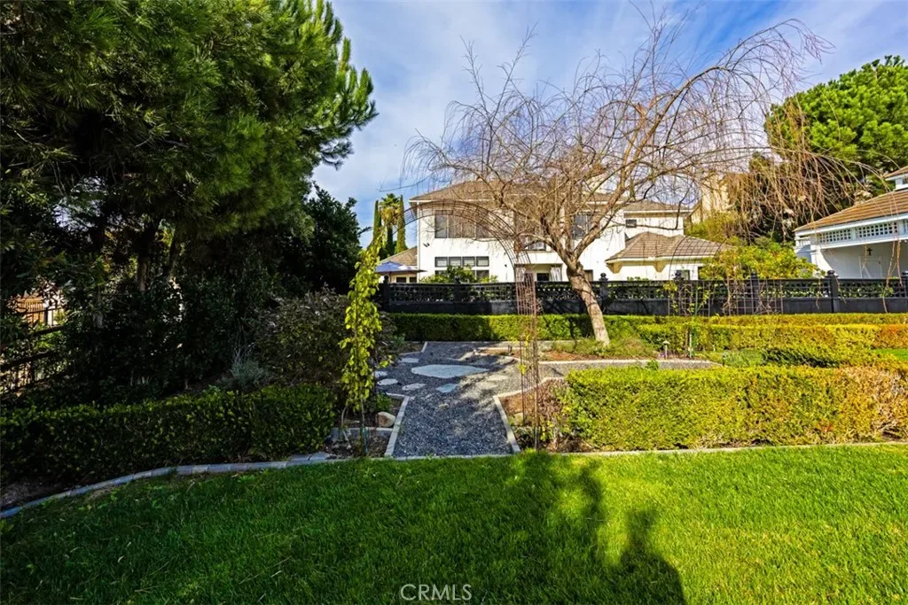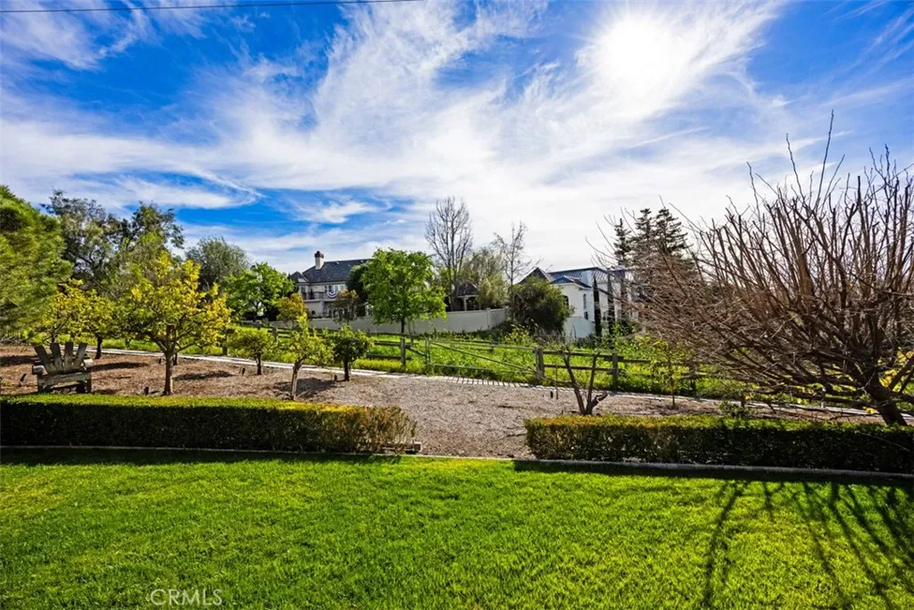 Outdoors, the estate transforms into a resort-caliber escape. A grand pool anchors the grounds, complemented by a built-in barbecue center and a detached pool cabana with its own fireplace and private bath with shower. A charming citrus orchard and lush, park-like lawn complete the setting, offering both beauty and privacy in equal measure.