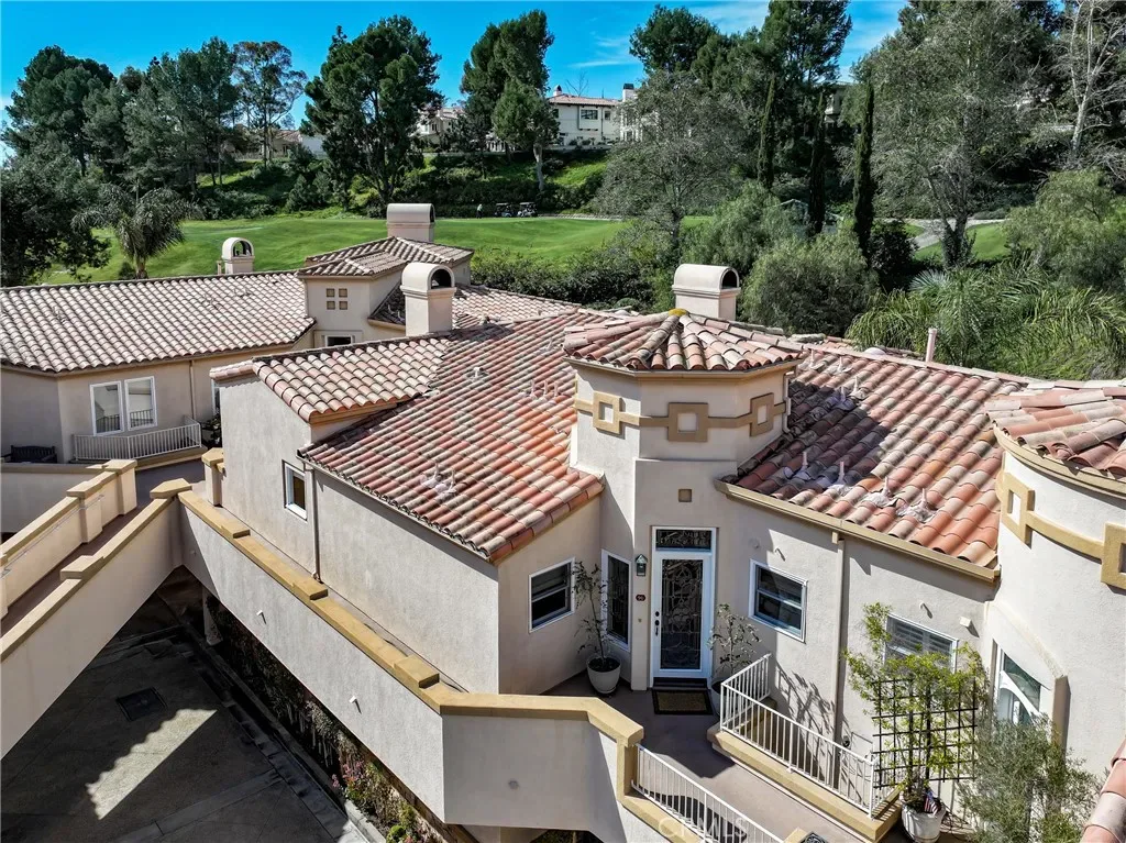 Laid back Luxury and Country Club living at its finest. This UPPER single-level villa with approximately 2285 sq ft overlooks a tranquil greenbelt in what is arguably one of the most desirable locations in the community. Positioned on the upper level with no neighbors above and attached on only one side, the home offers exceptional privacy and serenity. The highly sought-after floor plan creates an immediate sense of grandeur, featuring soaring ceilings, refined architectural details, and a wide, open footprint that lives like a single-family home. Two spacious primary suites—each with its own en-suite bath—are thoughtfully placed at opposite ends of the residence for maximum privacy. A separate, versatile room serves perfectly as a den, home office, or optional 3rd bedroom. Designer upgrades were meticulously curated to elevate both form and function, blending timeless elegance with modern sophistication. Highlights include a custom wine closet, bespoke window treatments, crown molding, rich hardwood flooring with upgraded baseboards, solid wood interior doors with updated hardware, custom fireplace surrounds, upgraded lighting throughout, and a kitchen featuring marble countertops and stainless steel appliances. New HVAC system, new 50 gallon water heater. Large 2 car garage w/built-ins. Residents have the option to separately join the private Marbella County Club, offering world-class golf,tennis, fitnes facilities, classes, pickleball and a Jr. Olympic lap pool. The community is located near award-winning schools and many prestigious private schools. For work Freeway and Toll Road close. No Mello Roos.