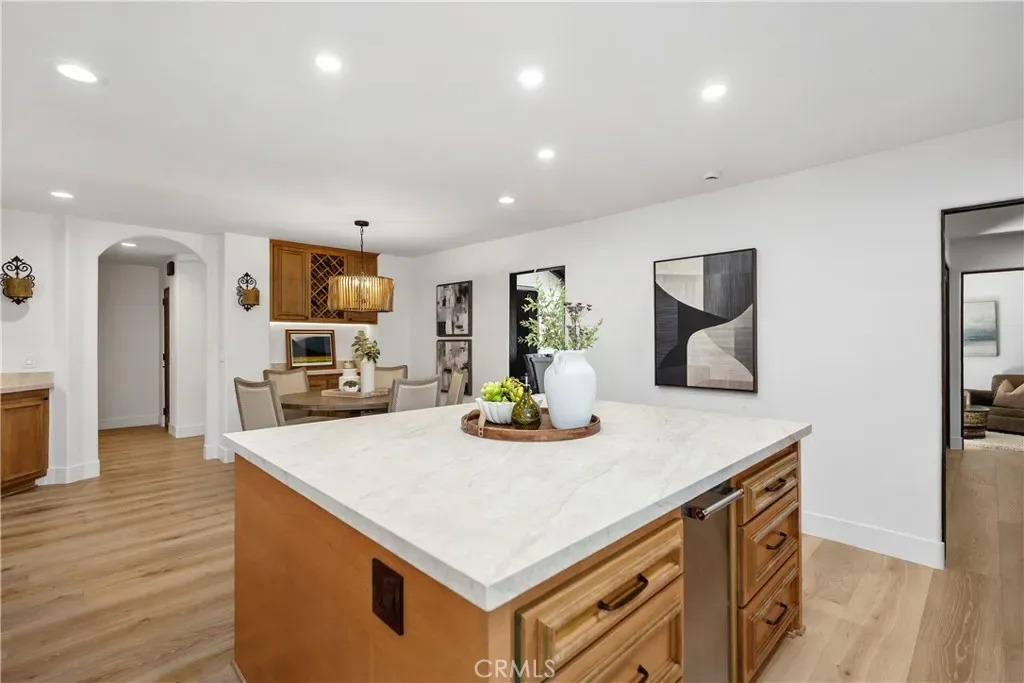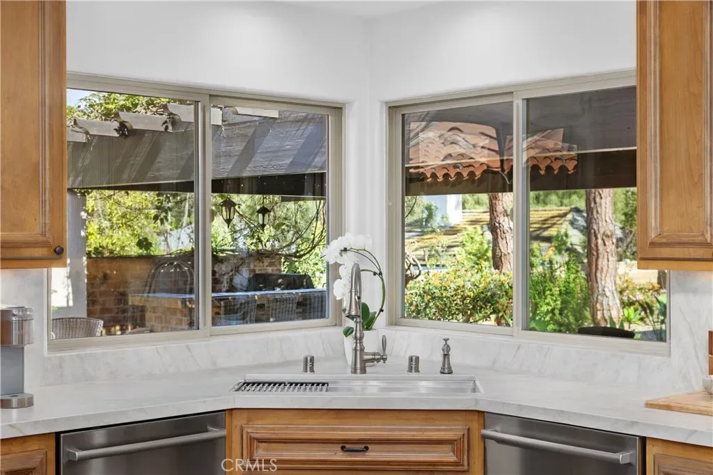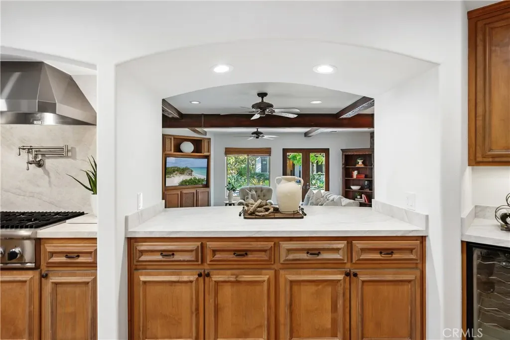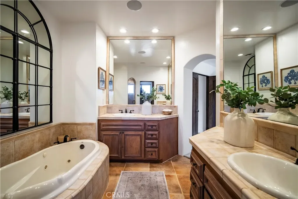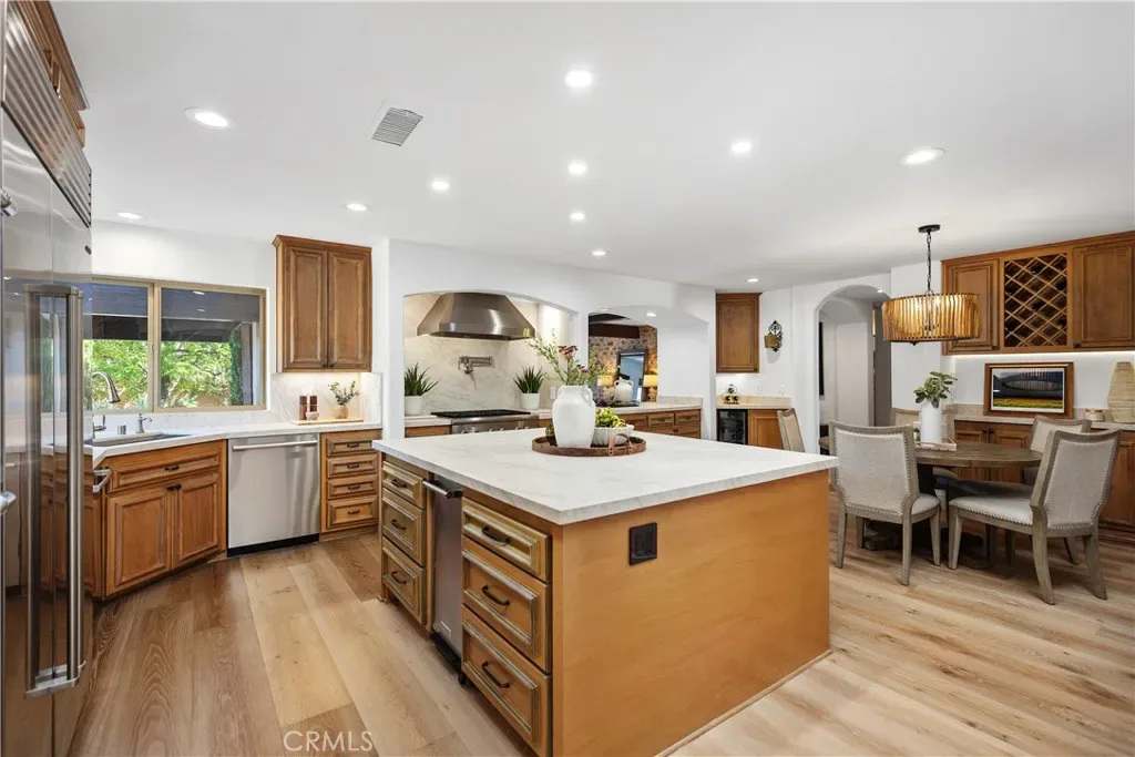 An exceptional private estate defined by timeless Spanish Colonial Revival architecture, bespoke design elements, expansive grounds, and resort-inspired living in one of San Juan Capistrano’s most desirable settings. Surrounded by approximately 22,000 square feet of beautifully curated grounds, the property blends classic design, impressive scale, and effortless indoor-outdoor living. A dramatic double-height foyer and sweeping curved staircase introduce interiors rich in character and craftsmanship. Vaulted and beamed ceilings, custom millwork, elegant lighting and brick accent walls create a warm yet refined atmosphere, while wide-plank wood flooring flows throughout the home’s main living areas. Now beautifully reimagined, the chef’s kitchen serves as the centerpiece of the residence. Anchored by striking Taj Mahal surfaces and an oversized island designed for gathering, the space offers generous storage, refined lighting, and an expanded pantry. Premium Thermador appliances including a six-burner range and dual dishwashers support both everyday living and entertaining. The kitchen flows seamlessly into the inviting family room with fireplace and French doors opening to the backyard. The thoughtfully designed floor plan offers exceptional flexibility with a spacious main-level suite featuring patio and fountain access. Also on the main level, a generous dual office suite provides versatility and could convert to an ensuite bedroom. Upstairs, the luxurious primary retreat features a sitting area with beverage refrigerator, fireplace, and private balcony capturing beautiful hill views. The spa-inspired bath includes a soaking tub, dual vanities, and walk-in closet. An additional spacious ensuite bedroom is also located on the upper level. Enhanced landscaping complements the estate’s architectural lines and mature setting. The expansive backyard is designed for relaxed living and gatherings, featuring a sparkling pool and spa, bocce ball court, shaded dining terrace with built-in BBQ, fireplace lounge, and fire pit. A detached two-room casita with patio and kitchenette offers flexibility for guests or extended stays. Equestrian zoning enhances the versatility of the property. Ideally positioned west of I-5 and just minutes from historic downtown San Juan Capistrano, the Los Rios District, coastal beaches, and Dana Point Harbor. A rare opportunity to enjoy timeless architecture, resort-caliber grounds, and an exceptional coastal lifestyle.