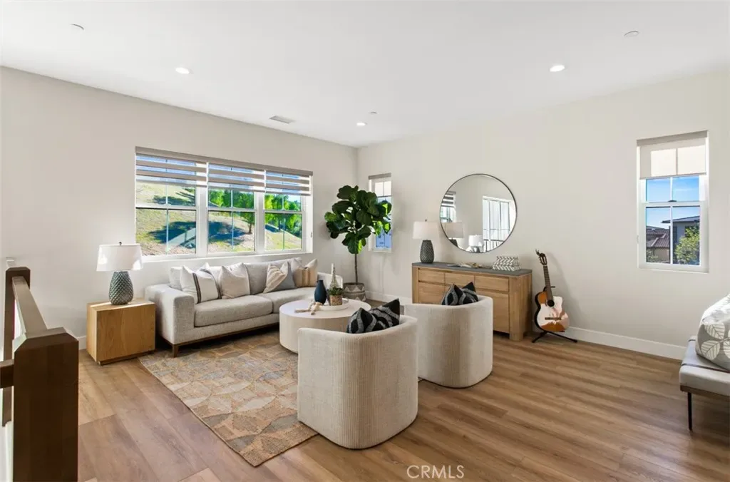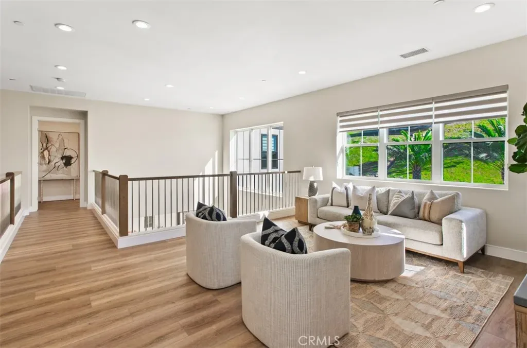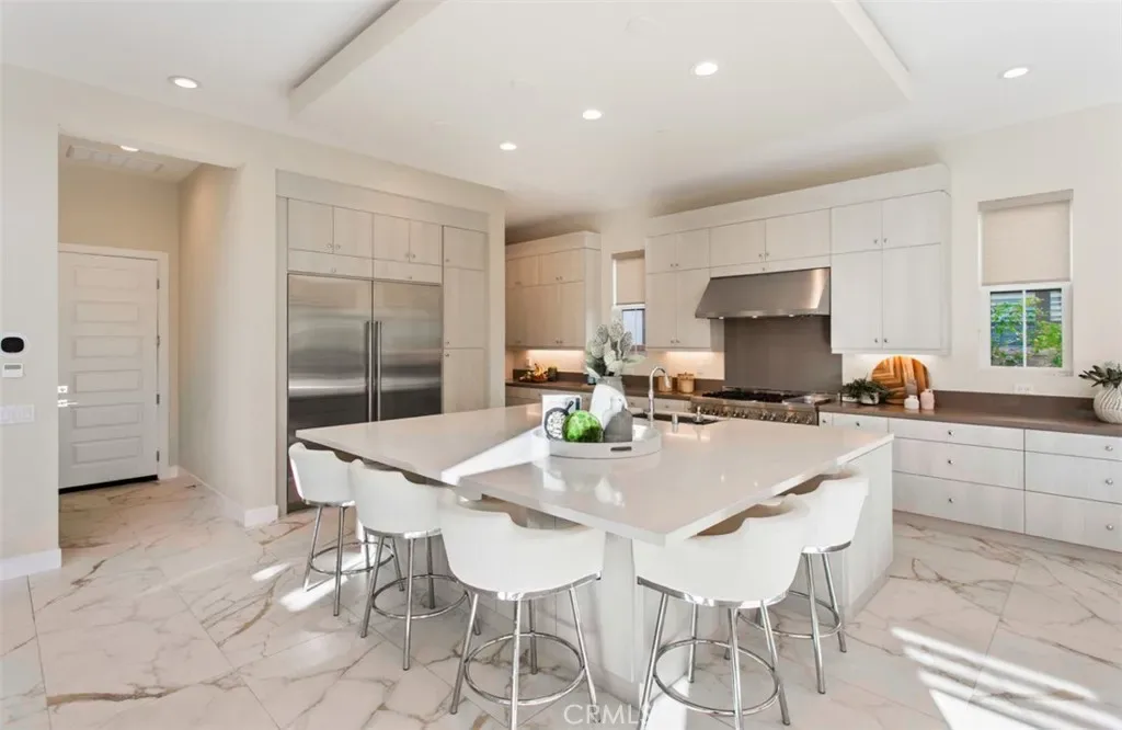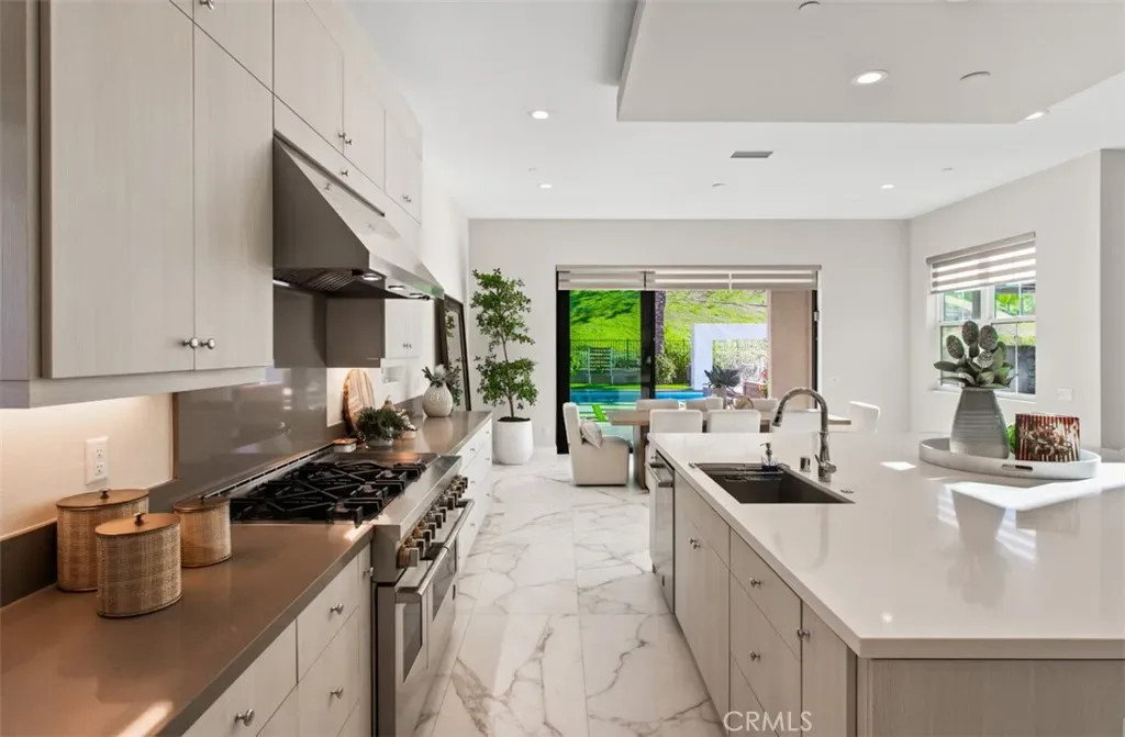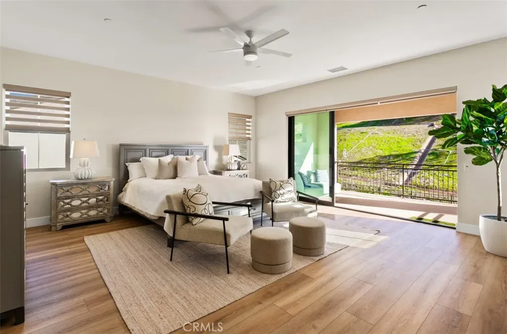 Ocean views, a resort-style backyard with pool, spa, sauna, cascading waterfall, fire table, and bar lounging areas create the ultimate setting for luxurious coastal living in Ocean Hills, just minutes from Dana Point Harbor. Ideally positioned with sprawling open space both behind and to the side, this beautifully refreshed residence offers exceptional privacy and a unique serene setting while enjoying access to Ocean Hills’ amenities which include an array of scenic trails along with a community clubhouse with water and entertainment amenities including a fitness center. Inside, the home has been thoughtfully updated with new flooring throughout, showcasing Calacatta Oro matte Italian porcelain tile across the entire main level. Fresh interior paint and a bright modern palette enhance the open-concept great room where expansive living and dining spaces center around views of the backyard oasis. The chef’s kitchen blends style and functionality with soft-close drawers/cabinets, a Sub-Zero refrigerator, JennAir six-burner gas range, under-cabinet lighting and a generous walk-in pantry. The main level offers exceptional flexibility with a private guest suite featuring an ensuite bath, along with a wellness room that can easily serve as a fifth bedroom, fitness studio or home office. Upstairs, a spacious loft landing provides additional living space while the primary suite offers a large private balcony with ocean and sunset views, an oversized walk-in closet and a spa-inspired bath with soaking tub, dual-entry glass shower, separate vanities, and a private balcony to take in the views and enjoy the coastal breeze. The backyard unfolds as a private resort-style retreat, designed for both relaxing and elevated entertaining. A saltwater pool and spa feature two Baja shelf entries and a dramatic waterfall cascading from a sculptural rain-wall arch. Tile blends seamlessly with turf and curated landscaping including fragrant roses, citrus trees and seven raised edible planter boxes. Outdoor entertaining has a fully equipped BBQ kitchen featuring a Fontana pizza oven, refrigerator, sink, and side burner. A spectacular 17-foot sit-up bar anchors the covered pergola with electric control shade, ceiling heaters and built-in lighting for year-round gatherings. Nearby is a gas fire-table lounge with integrated LED lighting. Additional highlights include a Pentair smart pool system, outdoor barrel sauna, epoxy garage flooring, and dual side yard gated access.