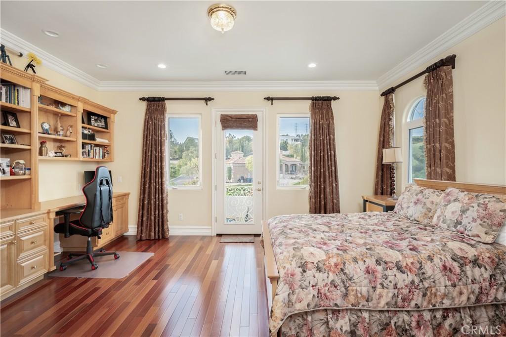 Nestled on a private 2.5-acre lot along the highly sought-after Hilltop Way, this impressive 8,780-square-foot Mediterranean estate had only one owner. The property’s elevated setting provides peace and seclusion, delivering quiet views of the surrounding green hillsides.The home’s layout has been thoughtfully designed to balance privacy with the ability to host large gatherings. Upon entering, guests are welcomed by a grand foyer adorned with a striking wrought-iron staircase. This impressive entryway leads into a spacious living room characterized by soaring ceilings and elegant arched glass doors, creating an atmosphere of openness and sophistication.The classic, formal floor plan continues with a dedicated formal dining room, perfect for entertaining guests, and a generous chef’s kitchen. The kitchen stands as the heart of the home, featuring a substantial granite island, 2 dishwashers, and a suite of high-end appliances, making it ideal for both everyday living and hosting significant gatherings. The residence features comprehensive amenities, including an internal elevator for easy access between floors. 2 luxurious master suites offer comfort and privacy. For leisure and entertainment, the estate offers a mahogany-paneled billiard room and a home theater, which features a 130-inch screen and walls wrapped in exquisite jacquard fabric for an immersive cinematic experience. Additional amenities are designed for relaxation and wellness, including a dry sauna, two indoor jacuzzis, and a temperature-controlled wine cellar, ensuring that every aspect of comfort and luxury is addressed within this remarkable estate. Car enthusiasts will enjoy the 12-car garage and two spacious basement storage areas. The backyard is private, featuring a fenced pool, spa, and a covered outdoor kitchen equipped with a barbecue, smoker, wok, and more. Terraced slopes with fruit trees and flowers offer peaceful walks, and the property’s equestrian zoning allows convenient access to nearby riding trails. This estate features ground-mounted solar panels. Beyond the main residence, a 2 bedroom casita/ADU style unit with its own entrance and 2 decks, ideal for guests or residents wanting privacy. Conceptual plans for a formal ADU and guesthouse add further adaptability to suit various living needs. This exceptional estate seamlessly blends the tranquil, secluded atmosphere of a hillside ranch with all the structured, functional amenities expected in a classic luxury home.