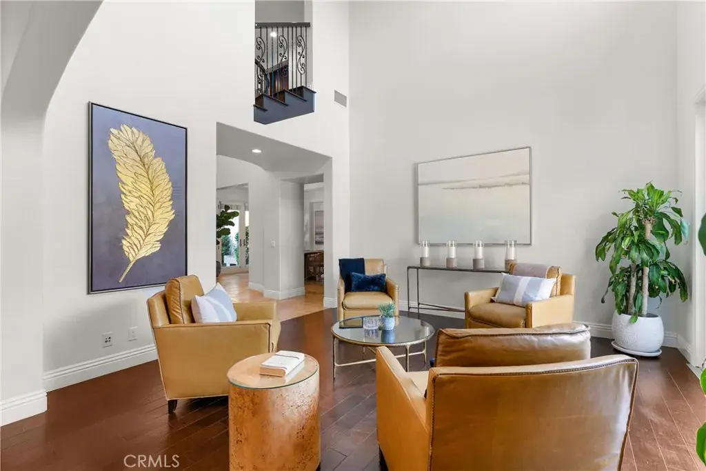 Located in the prestigious gated community of Rancho Madrina, this five-bedroom, five-and-a-half-bath residence combines timeless architecture with modern elegance. The home features a full smooth-coat exterior finish and fresh paint that create beautiful curb appeal, complemented by refined hardscape, fountains, and a redesigned landscape with a saltwater pool and spa. Inside, the grand entry showcases soaring ceilings, a dramatic chandelier, and designer lighting accents that set the tone for sophistication throughout. The open-concept kitchen flows seamlessly into the family room and outdoor entertainment area with a covered patio, built-in BBQ, and TV, perfect for gatherings and relaxed living. Multiple French doors, rich wood flooring, custom built-ins, and four fireplaces add warmth and character. Each bedroom includes its own ensuite bath, while the main-level suite provides flexibility for guests or multigenerational living. Additional highlights include newer appliances, recessed lighting, solid-core doors, and a three car tandem garage with custom cabinetry. Conveniently located near historic downtown San Juan Capistrano, Marbella Golf Course, award-winning schools, and Orange County’s world-class beaches.