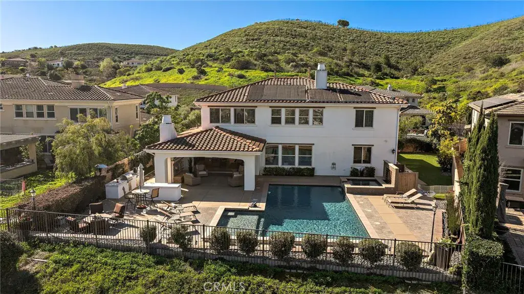 Welcome to 31830 Paseo Tarazona, a Spanish colonial architectural masterpiece. Situated within the private Mirador tract of Rancho San Juan, this popular model has everything you’ve been dreaming of. From sweeping, panoramic views of beautiful hills to the canyon, Saddleback Mountain and more, this property’s positioning within the community is unparalleled. Upon entering, you’ll immediately fall in love with the Provenza wood flooring that has a special texture unlike the typical flooring in homes these days. The gourmet kitchen includes top of the line appliances, a 7 burner stove perfect for cooking for both small intimate meals or large events. The kitchen also offers beautiful granite countertops, backsplashes and more. The downstairs offers a full suite with its own bathroom adjacent to a media or office room. This plan, referred to as the builder’s residence 3, is rarely on the market and is one of the best layouts in Mirador. As you slide the large glass pocket doors out of the way, you’ll find my favorite part of the home, the Capistrano room. This outdoor-indoor hybrid space is where guests will want to gather, where you can watch a breathtaking sunset or have the tv on, or where you can simply sit with a book in peace. The pool is a great size, and after the sun sets the laminars are fun feature to turn on, but the backyard still has so much more. With built in barbecue and food prep area, to a side yard with citrus and avocado trees and low maintenance turf. Upstairs is equipped with the laundry room and 3 additional bedrooms plus a loft or teen room as the builder calls it. Every one of the bedrooms has a view, especially the main bedroom upstairs. With two separate two-car garages, plugs for electric vehicles and solar panels on the property, it has everything you need. Located near award winning schools, a few traffic lights from San Clemente, and near historic downtown San Juan, this gem is the diamond you’ve been searching for!