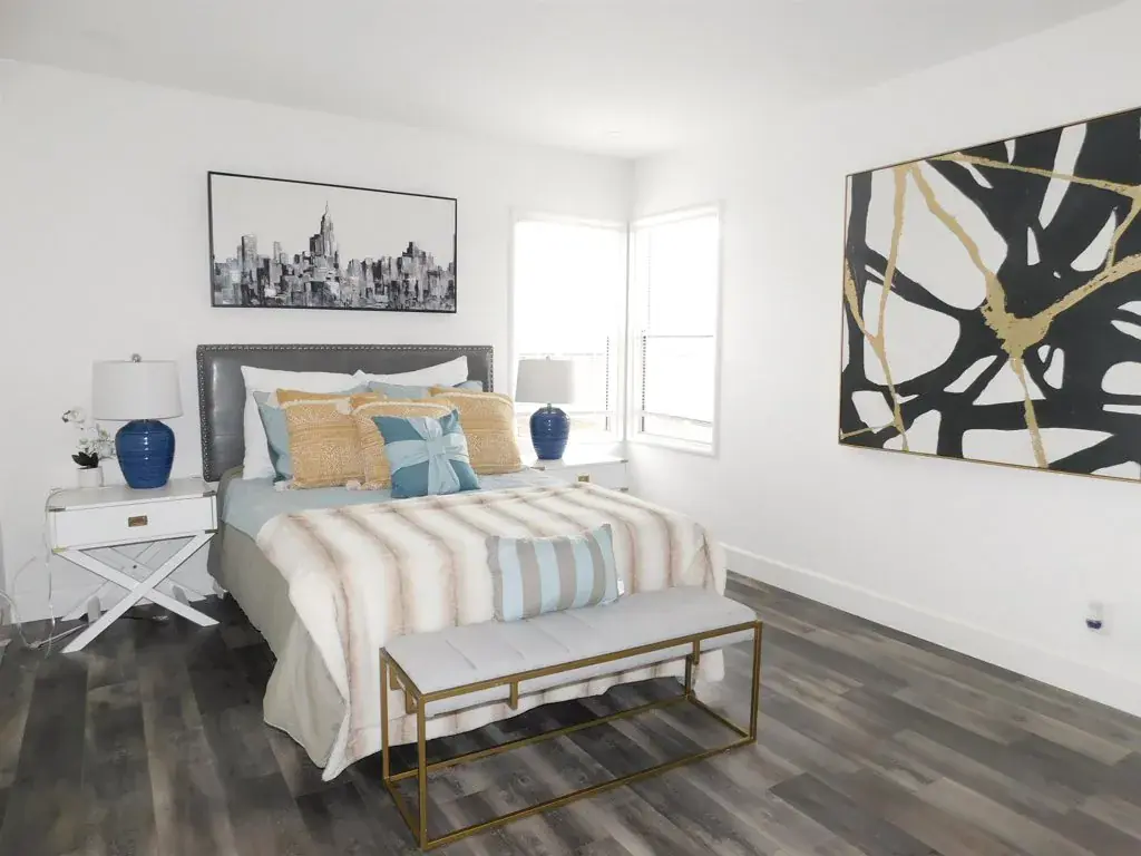 Welcome to this beautifully updated 3-bedroom, 1-bath Washington Manor gem, offering comfort, style, and exceptional indoor-outdoor living. The home features converted bonus room, along with new electrical plugs, switches, and modern light fixtures throughout. The inviting living room is highlighted by a charming wood-burning fireplace, creating a warm and welcoming atmosphere. The upgraded kitchen boasts ample cabinetry, a gas stove, built-in microwave, dishwasher, eat-in dining area, perfect for everyday living and entertaining. The remodeled bathroom includes a shower-over-tub, pedestal sink, and tile flooring. Attractive laminated flooring continues throughout the home, complemented by dual-pane windows and a forced-air heating system for year-round comfort. A converted garage offers a step-down family room (not included in square footage) and a convenient laundry area, providing additional flexible living space. The front yard is beautifully landscaped, while the backyard is a true tropical retreat featuring palm trees and a charming cabana—ideal for relaxation and entertaining. Conveniently located with easy access to freeways, shopping, Kaiser Permanente.