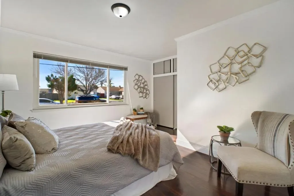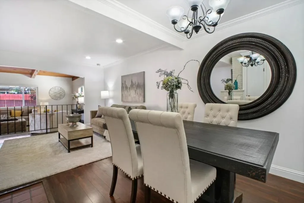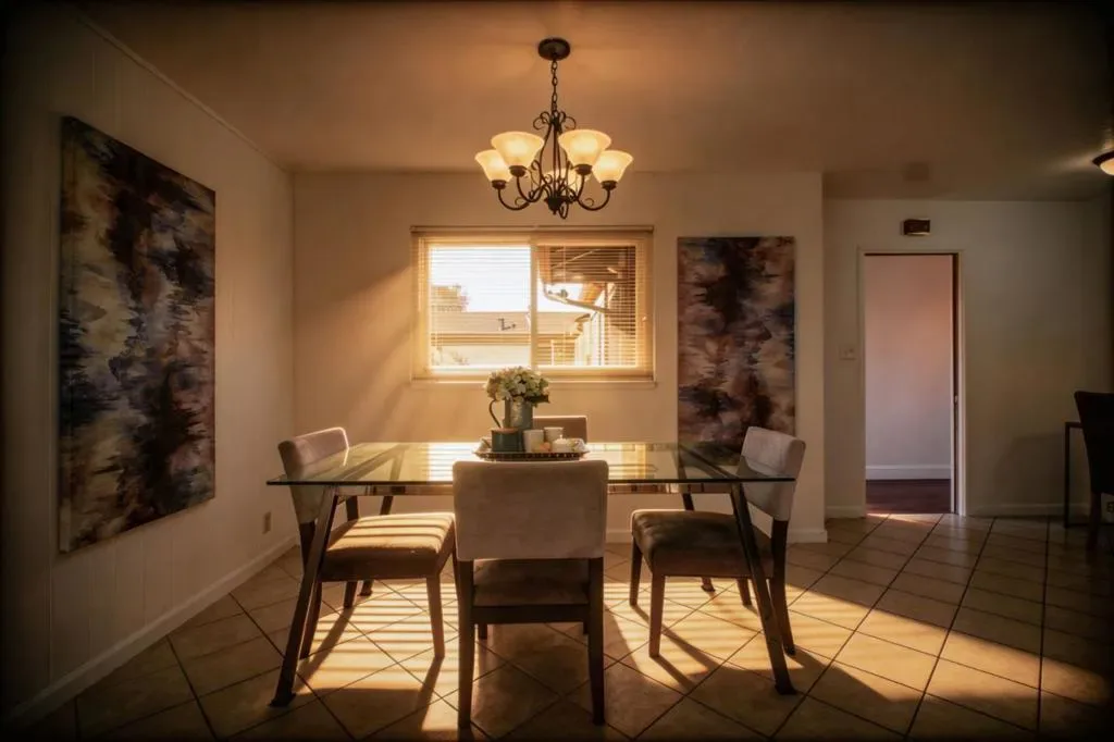 Welcome to this beautifully updated 3-bedroom, 2-bathroom home nestled on a tranquil street in the heart of San Lorenzo. Built in 1954, this residence seamlessly blends classic charm with modern amenities. Upon entering, you’re greeted by a gracious foyer leading to a cozy living room with newly updated ceilings and roof just a year old. The adjacent dining area, featuring a fireplace, creates a warm ambiance for gatherings. The spacious family-media room offers additional space for relaxation and entertainment. The chef’s kitchen boasts a large center island with quartz countertops, custom cabinetry, gas range, new appliances, and tile flooring perfect for culinary enthusiasts. The primary bedroom provides a generously sized closet and an en-suite bathroom, offering a private retreat. The backyard features a small vegetable garden and ample outdoor space. The garage has been reimagined with recessed lighting and tile flooring making usable sqft around 1,900 sqft. Situated near shopping centers, parks, and schools, this home offers both tranquility and accessibility. Lovingly cared for and thoughtfully updated, this elegant farmhouse-designed home is ready for its next owners to create lasting memories. Don’t miss the opportunity to own this home schedule your viewing today!