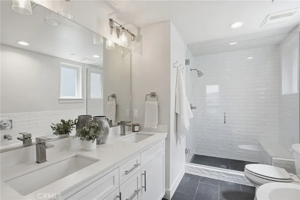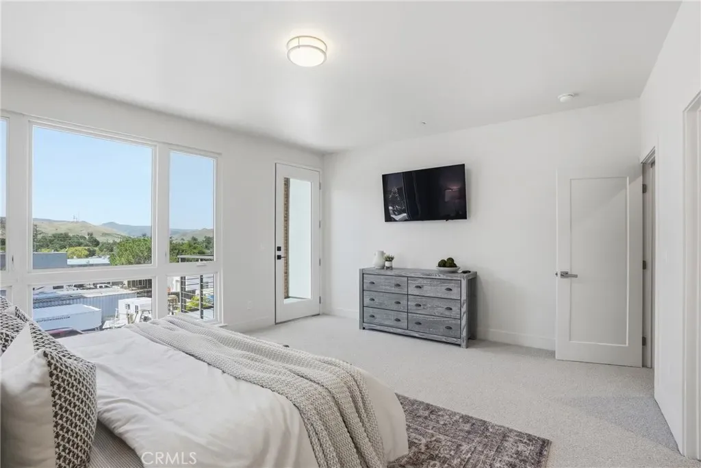Continue up to the third floor, where both bedrooms offer ensuite bathrooms for ultimate privacy and convenience. The spacious master bedroom floods with natural light and features its own private balcony and ensuite bathroom with a walk in closet, your personal retreat for relaxing or enjoying SLO evenings. The second bedroom, also with an ensuite bath, sits on the opposite side of the home for added separation. Between them, you will find the thoughtfully placed washer and dryer in the hallway, making laundry a breeze without changing floors.