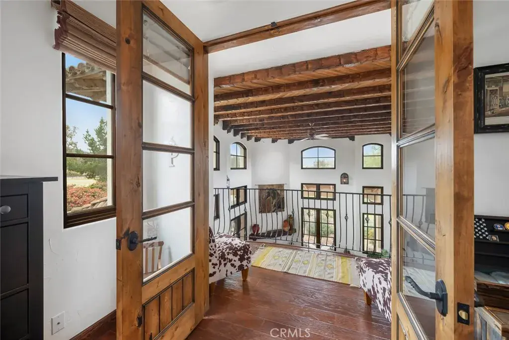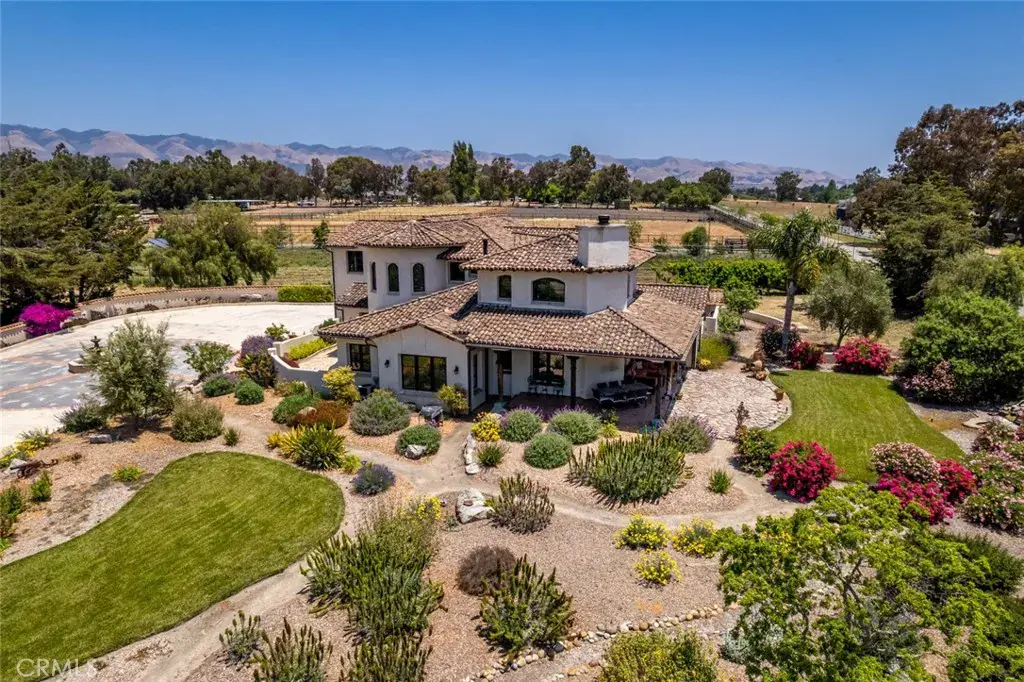Welcome to Hacienda Antigua, a breathtaking over 10-acre luxury estate just minutes from downtown San Luis Obispo, offering a fusion of refined living, premier equestrian facilities, and sustainable design. This turnkey retreat is ideal for equestrian professionals, luxury buyers seeking space and privacy, or investors with a vision for a boutique training facility or private getaway. At the heart of the property is a 4,725 sq. ft. Mission-style residence featuring cathedral ceilings, exposed wooden beams, custom built-ins, and expansive windows that flood the home with natural light. The gourmet kitchen boasts a large island with utility sink, high-end appliances, and artisan cabinetry. The primary suite serves as a private escape, with French doors, a spa-style soaking tub, walk-in shower, and large walk-in closet. A bonus room offers space for a home gym, art studio, game room, or office. Designed with equestrian excellence in mind, the professionally equipped facility includes a 25-stall barn, 18,000 sq. ft. covered riding arena, 2 large paddocks, 2 loafing sheds, multiple wash racks, outfitted tack room and on-site office and lounge for clients or staff. Three oversized roll-up bays for equipment and storage. Additional structures include spacious workshops, a woodworking and metal shop, a car lift, diesel fuel station, and car wash area, making the property ideal for both equestrian and hobbyist use. Outdoor features also include an archery range, orchard, vegetable garden, potting shed, wood shed, and over an acre of nutrient-rich farming soil. Comfort and peace of mind are enhanced by a Bullfrog 8-person spa, two fully serviced septic systems, and a comprehensive off-grid-ready infrastructure. The estate is powered by a robust solar array, wind turbine, and a Generac generator capable of powering the entire property for over 48 hours. Included in the sale are a tractor with attachments, premium garden and shop tools, and optional custom furnishings such as a dining table, pool table, and bookcases. There’s also room for future expansion with space for a pool, outdoor kitchen, or ADU. Despite its private, rural feel, the property is just minutes from San Luis Obispo’s shopping, dining, and coastal charm. Hacienda Antigua is more than a home, it’s a destination and a legacy property like no other. Schedule your private tour today and experience the balance of luxury, self-sufficiency, and equestrian excellence.