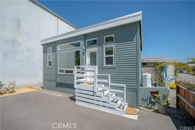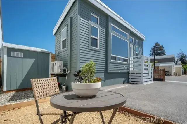 Experience the best of San Luis Obispo living in this beautifully designed 2018 Cavco tiny home—where thoughtful design meets modern comfort. Perfectly positioned within walking distance to the vibrant downtown scene and weekly Farmer’s Market, and just a short drive from the coast, this home offers a lifestyle that blends convenience, charm, and ease. Inside, the open and airy layout feels surprisingly spacious, with vaulted ceilings, white shiplap walls, and oversized windows that fill the home with natural light. Enjoy energy-efficient comfort year-round with a split AC and heating unit and two ceiling fans. The kitchen features modern finishes, a newly replaced induction cooktop, and clever storage solutions throughout. The bedroom area accommodates a queen bed with built-in storage above, while a long breakfast bar doubles as a workspace for remote days or relaxed dining. An in-unit washer and dryer, private storage shed, and two dedicated parking spaces make everyday living effortless. Situated on the edge of the park with only one adjoining neighbor, this home offers added privacy and foothill views—all within an all-ages community. Downtown San Luis Obispo offers endless opportunities to explore: from local boutiques and farm-to-table dining to live music, art walks, and hiking trails just minutes away. Whether you’re looking to simplify or savor a more intentional way of living, this tiny home is a smart and stylish condo alternative with no property taxes (DMV registration). Now’s the perfect time to embrace affordable luxury in the heart of the Central Coast.