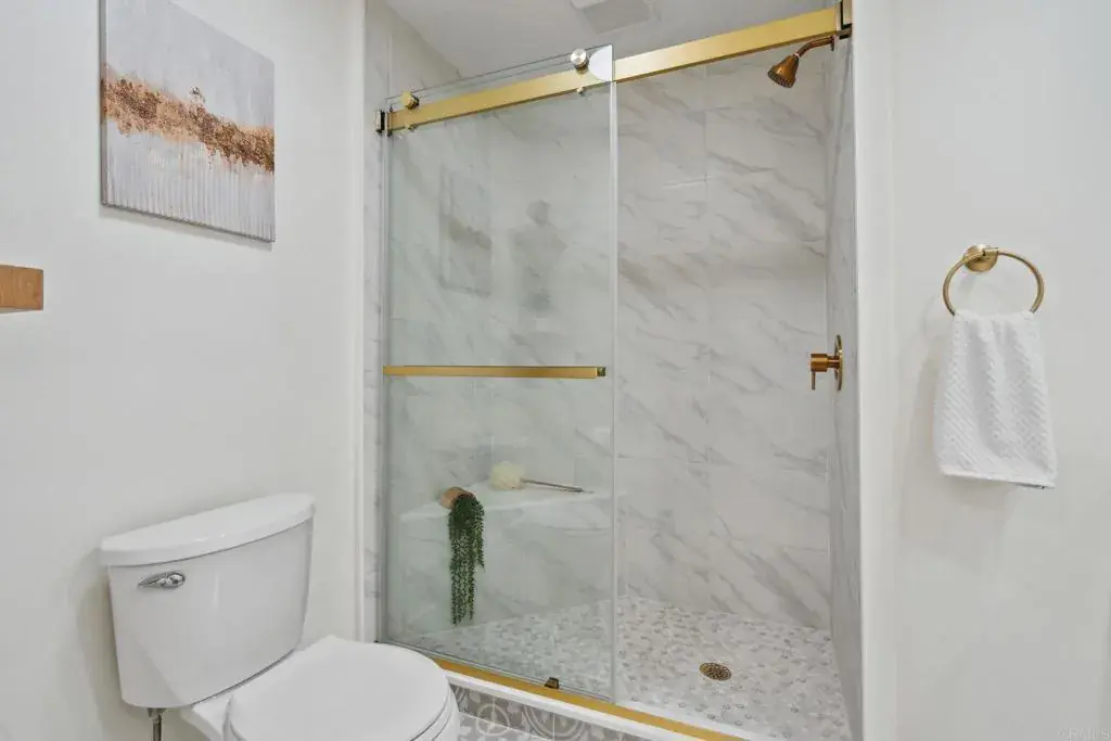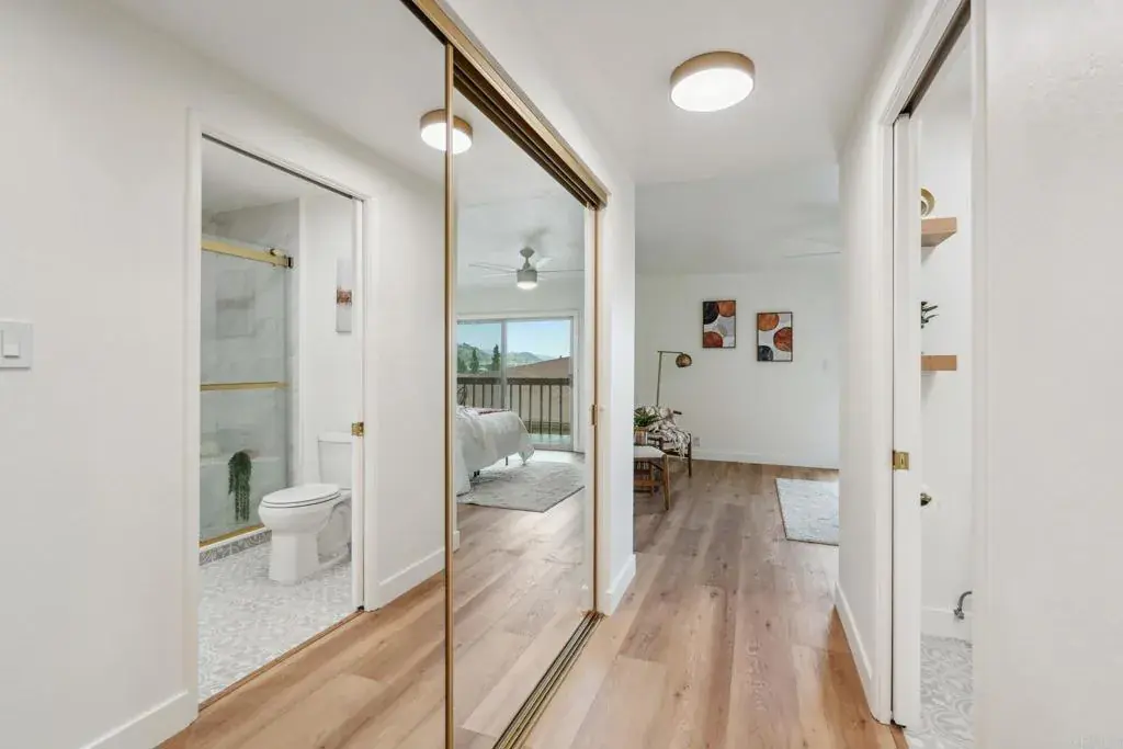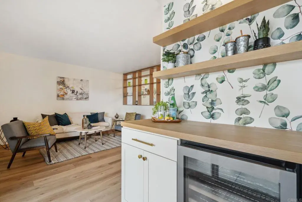 Stunning completely remodeled townhome with gorgeous views in the highly desirable resort style Lake San Marcos community! This meticulously upgraded 3 bed/2 bath residence features a gourmet kitchen with custom fabricated cabinetry, dual large pantries, white quartz countertops, and a beautiful white oak peninsula. All new stainless-steel appliances include range, hood, dishwasher, refrigerator, and microwave. The open-concept living and dining areas showcase a custom white oak bookcase partition wall and stylish wallpaper accent walls, while the bonus room offers versatile space for office or play with noise reduction insulation. Both bathrooms have been beautifully upgraded with new vanities, fixtures, tiled surrounds, and gold decorative accents. The master bath additionally features a custom tiled shower with glass door and white oak floating shelves. The freshly painted interior also includes luxury vinyl plank flooring, new light fixtures, ceiling fans, and custom gold door handles. The remodeled laundry space includes new washer/dryer, cabinets, and butcher block countertop. Additional highlights include a single car garage with remote door opener, plus bonus exterior parking, and a spacious storage/hobby room. The low HOA of $420/month includes water, trash, and garage electrical. Optional Lake Lodge membership provides access to tennis, pickleball, pools, gym, and game room. Award winning San Marcos schools and walkable to local shopping and dining.